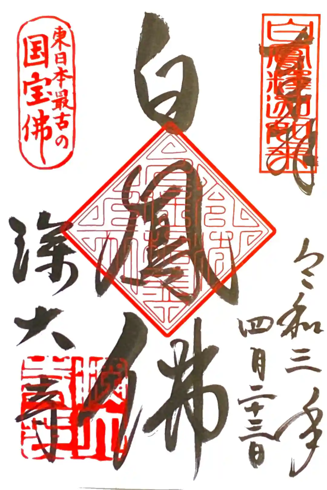 書き置きのみで3種類から選べます。今回はご本尊じゃなく、白鳳佛を頂きました。