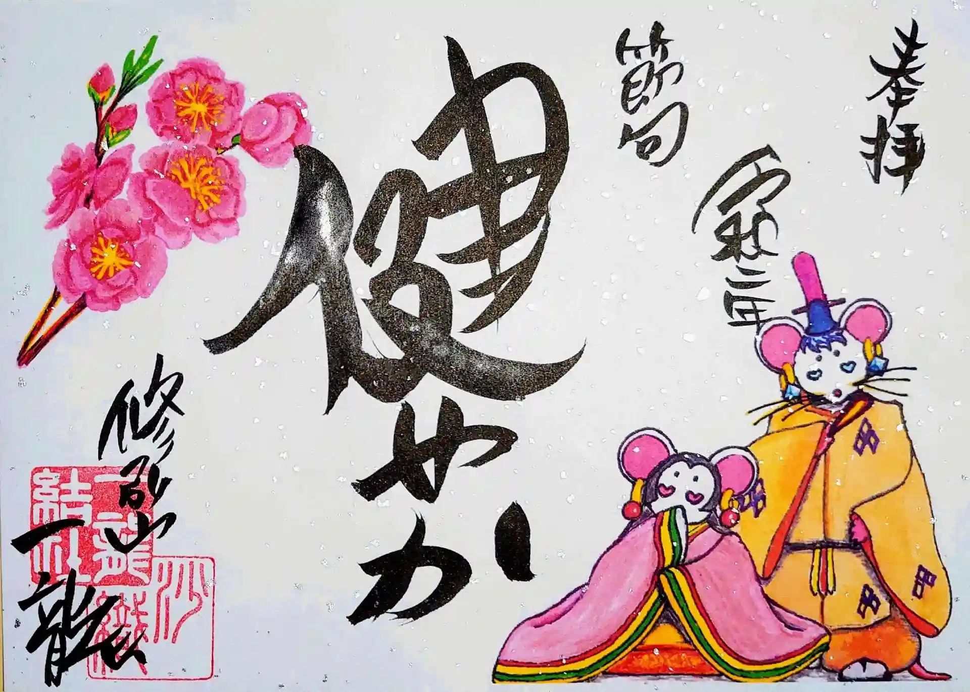 まずは、ひな祭りの御朱印。お内裏様、お雛様の目が❤。