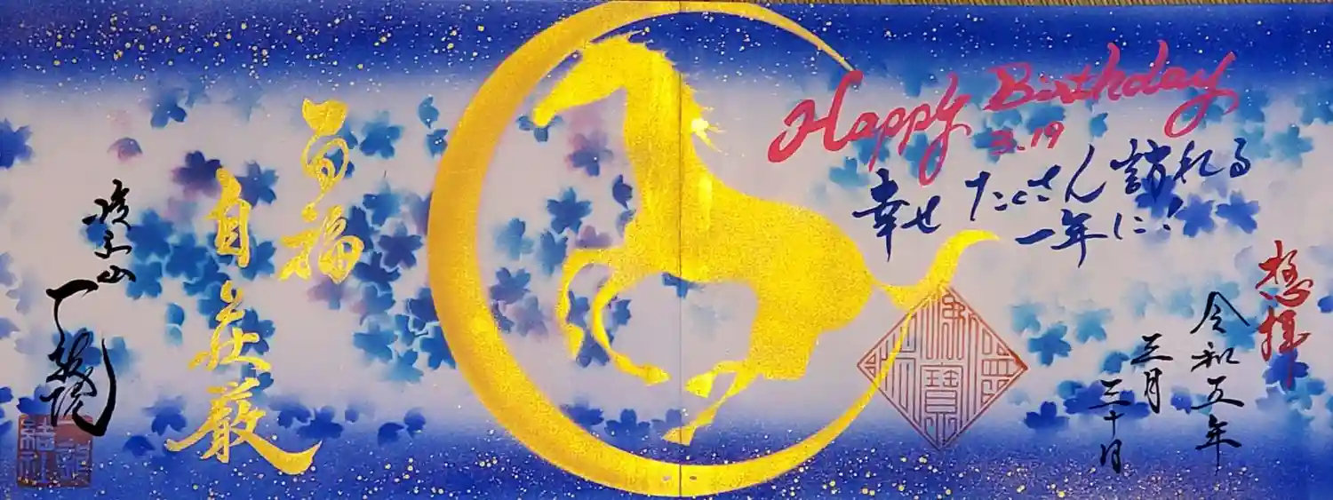 背景をブルー系の桜🌸誕生日バージョンでお願いしたところ、こんな素敵な御朱印になりました💕💗💖😻😍☺️😊