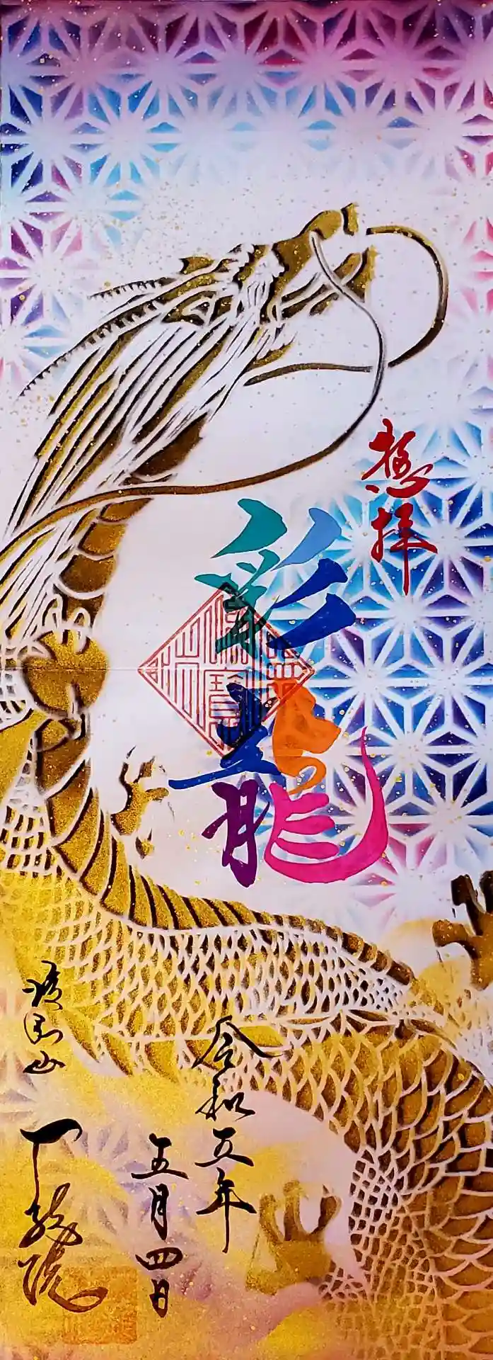 お堂とカスタマイズして頂いたアート誕生日御朱印"デジタルドラゴン"