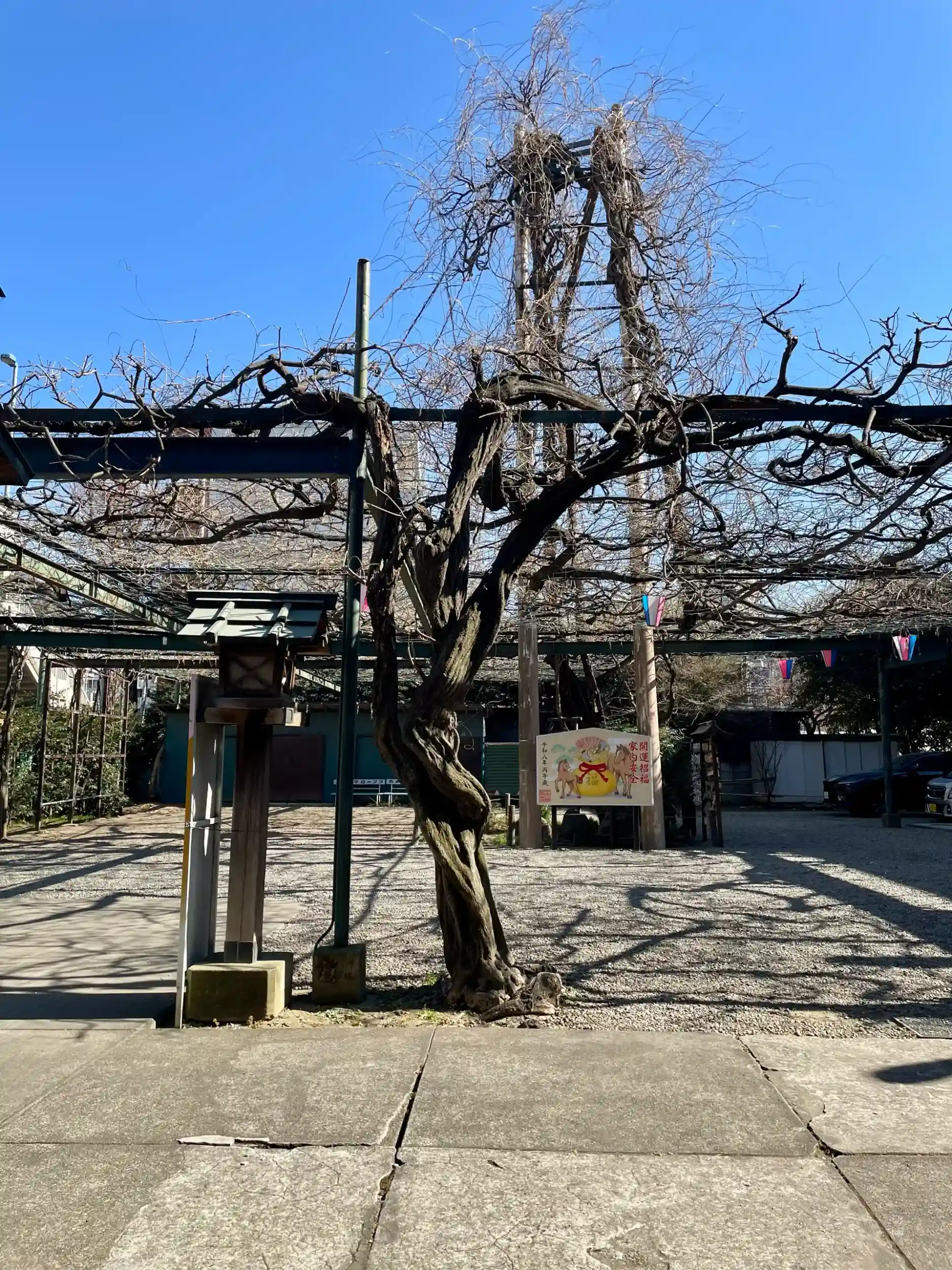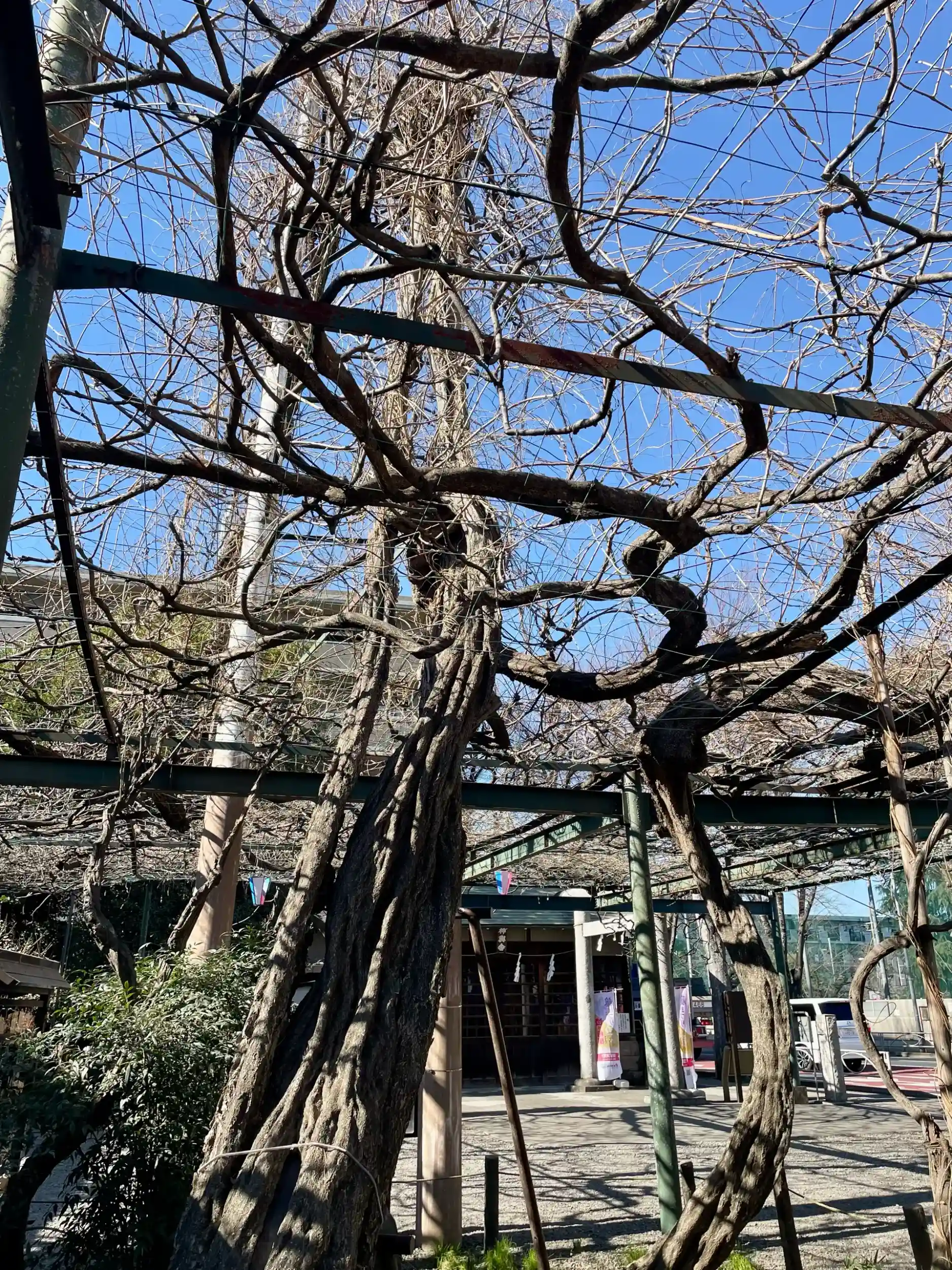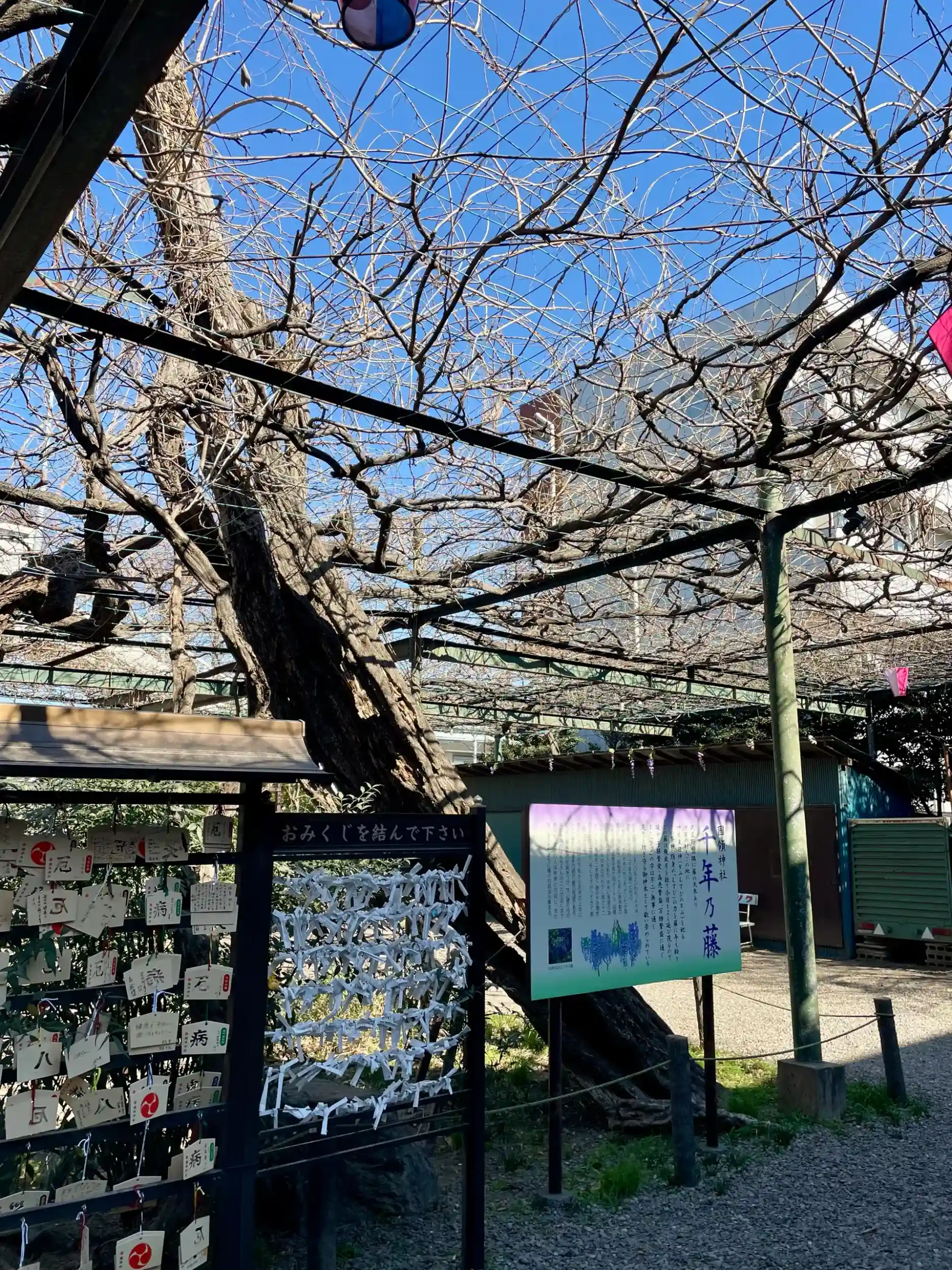 境内には御神木の「千年乃藤」があり「千年乃藤のお宮」とも称され、「調布八景」の1つにも数えられている。