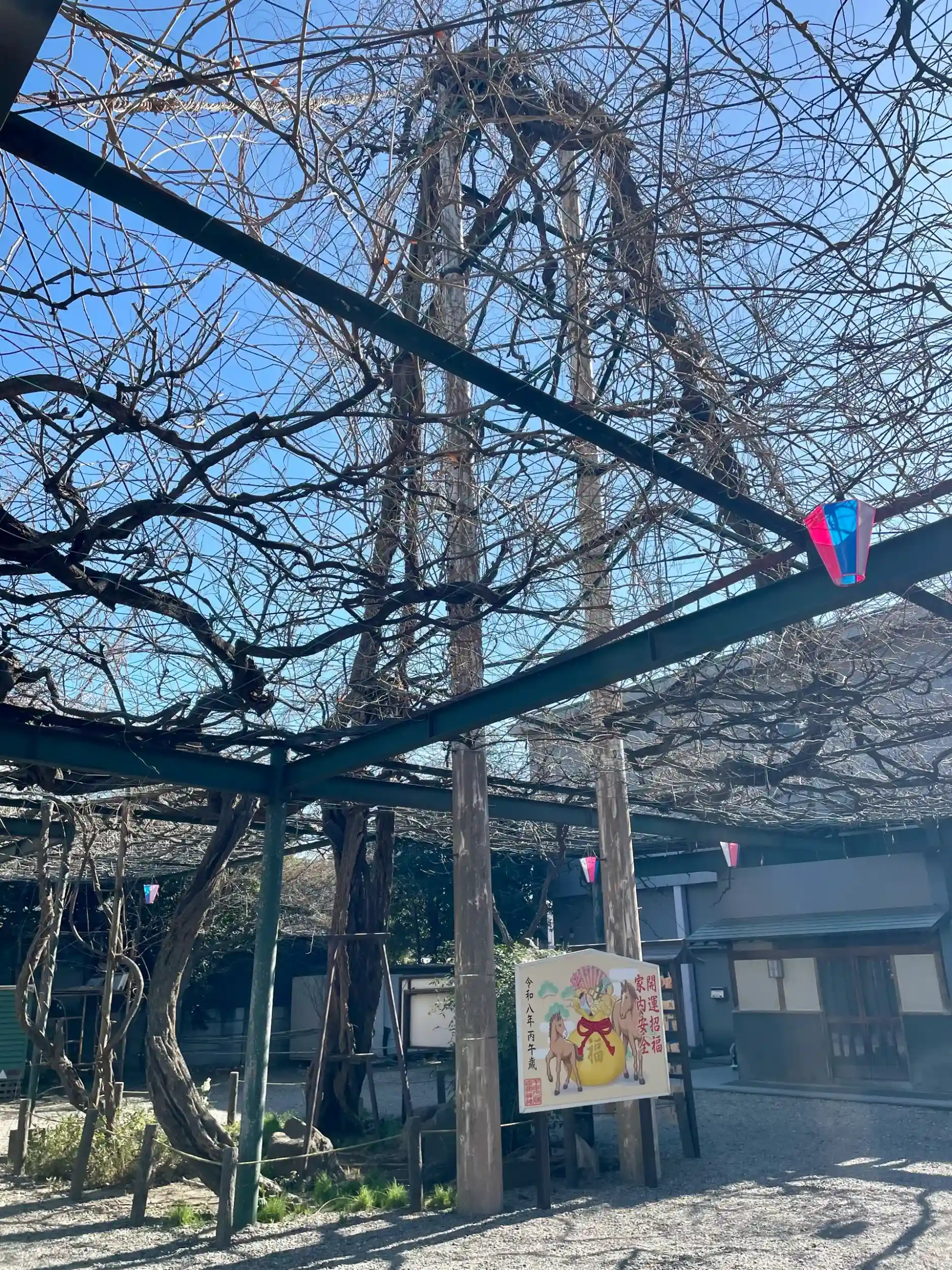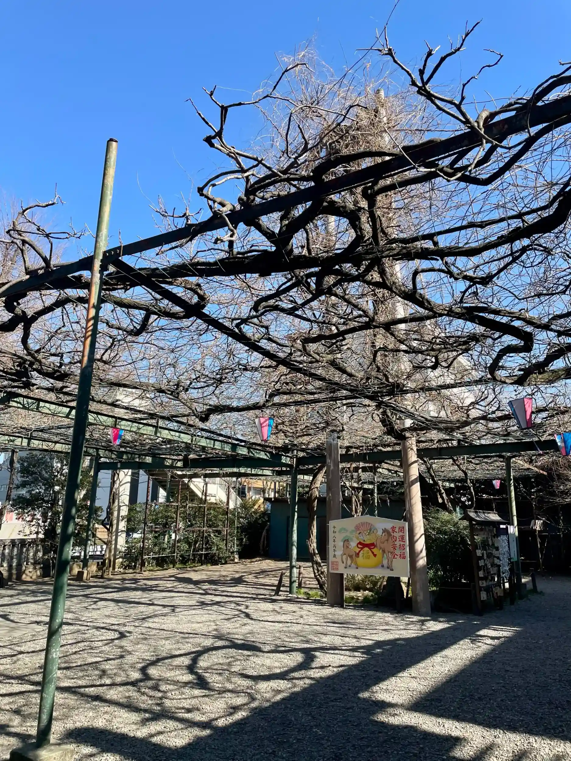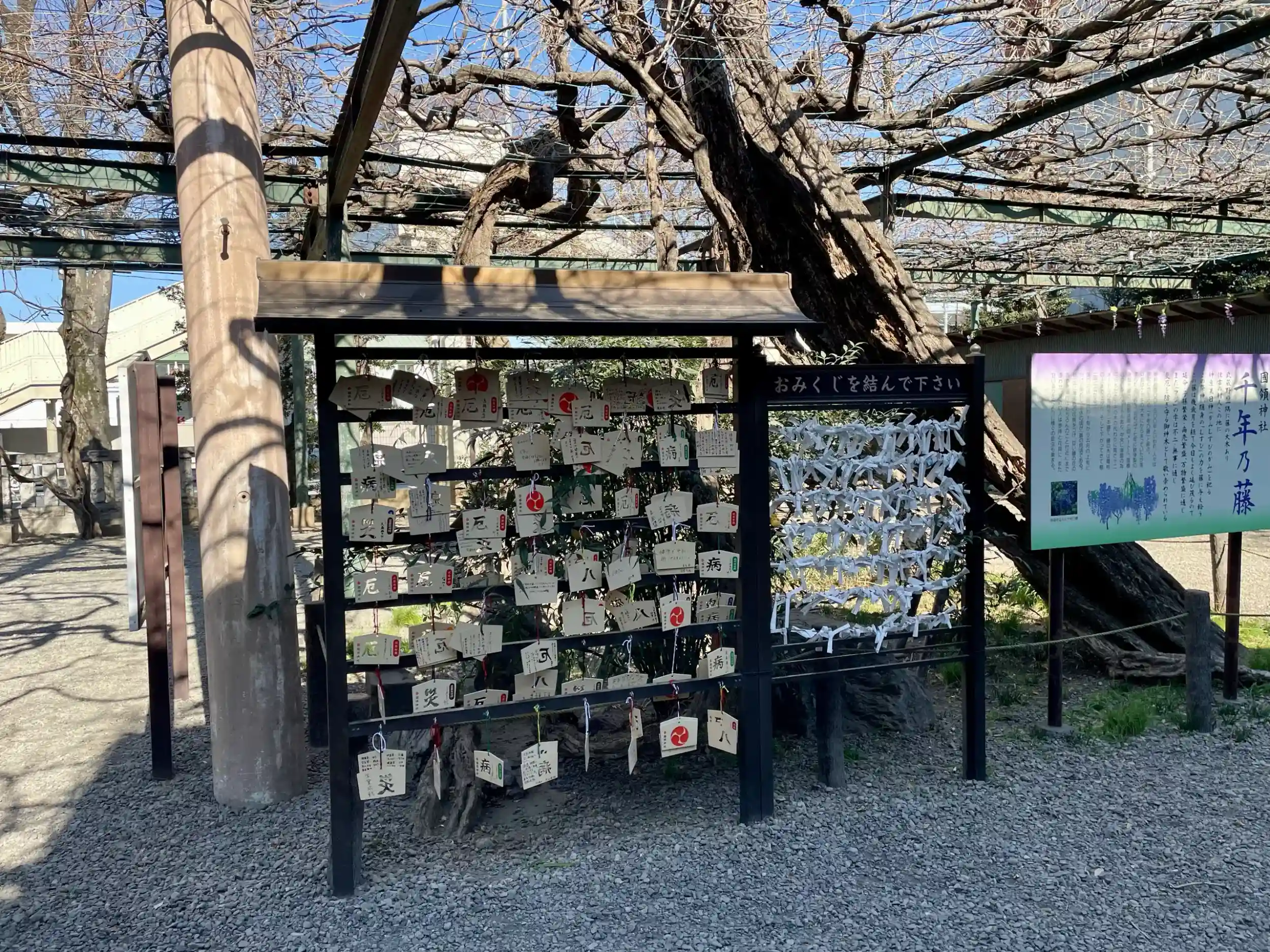 境内には御神木の「千年乃藤」があり「千年乃藤のお宮」とも称され、「調布八景」の1つにも数えられている。