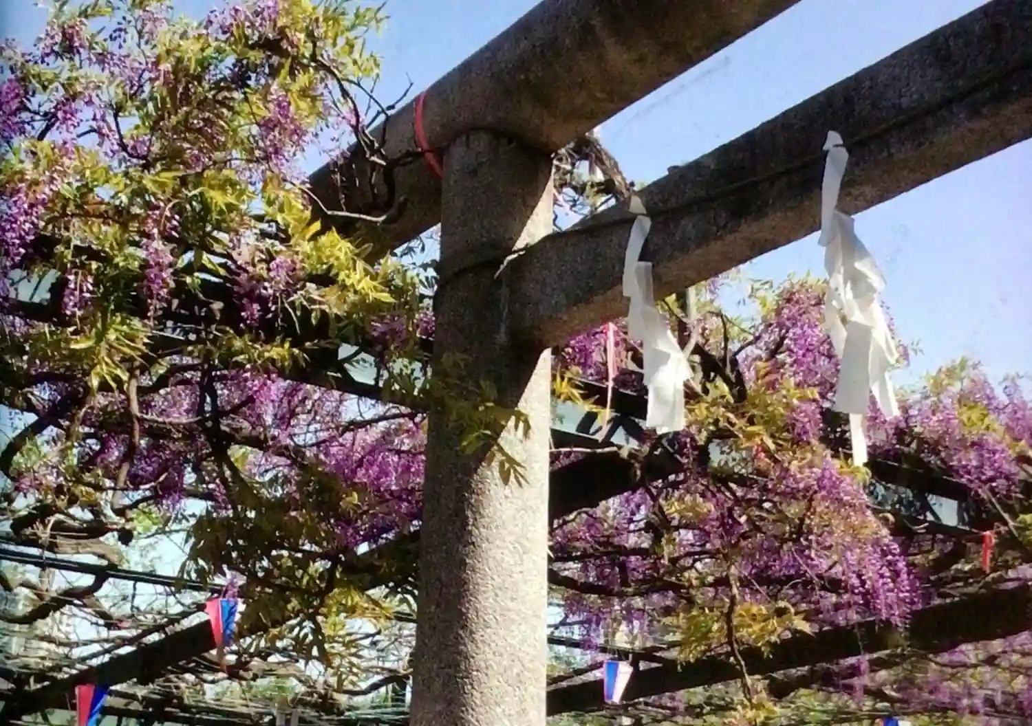 藤の花ごしの鳥居