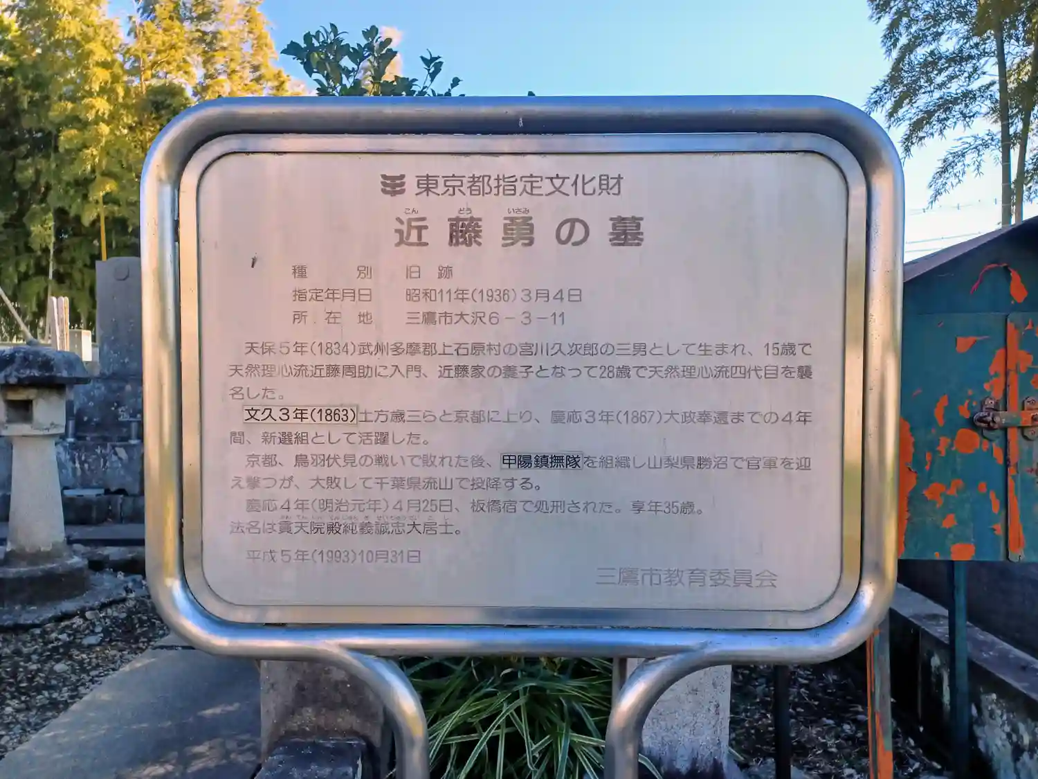 近藤勇のお墓の説明板