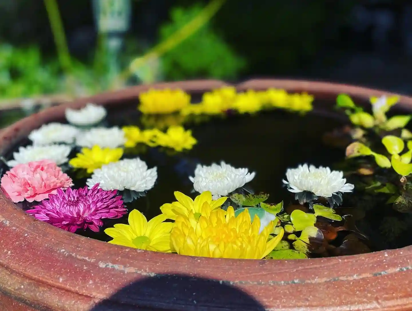 花手水ならぬ花メダカ鉢にしてみました。
