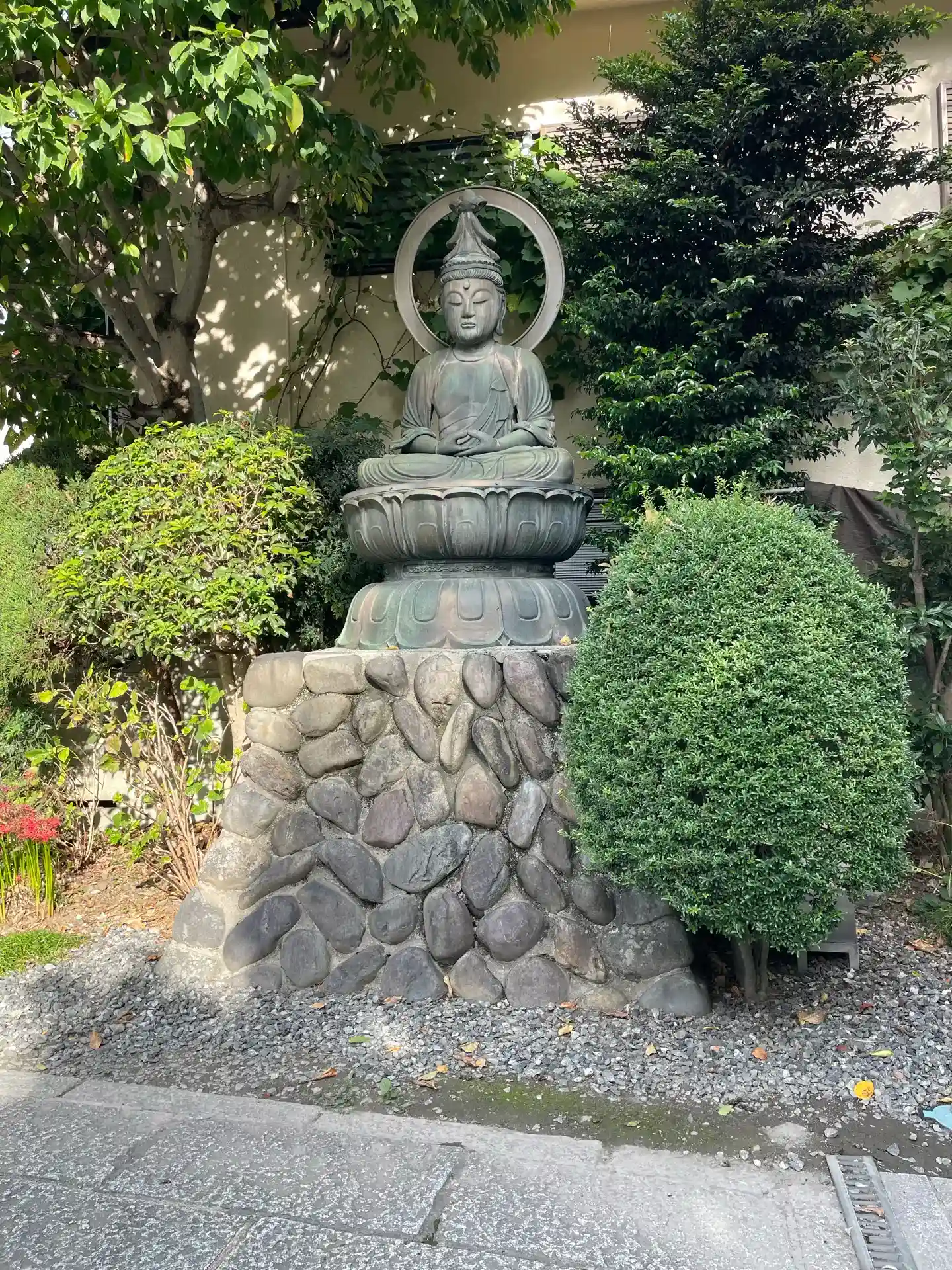 若い友人の2人目の赤ちゃんに会いに行って、一緒に、広い境内を散歩、曇ってたのに、お寺を訪れた時間だ…