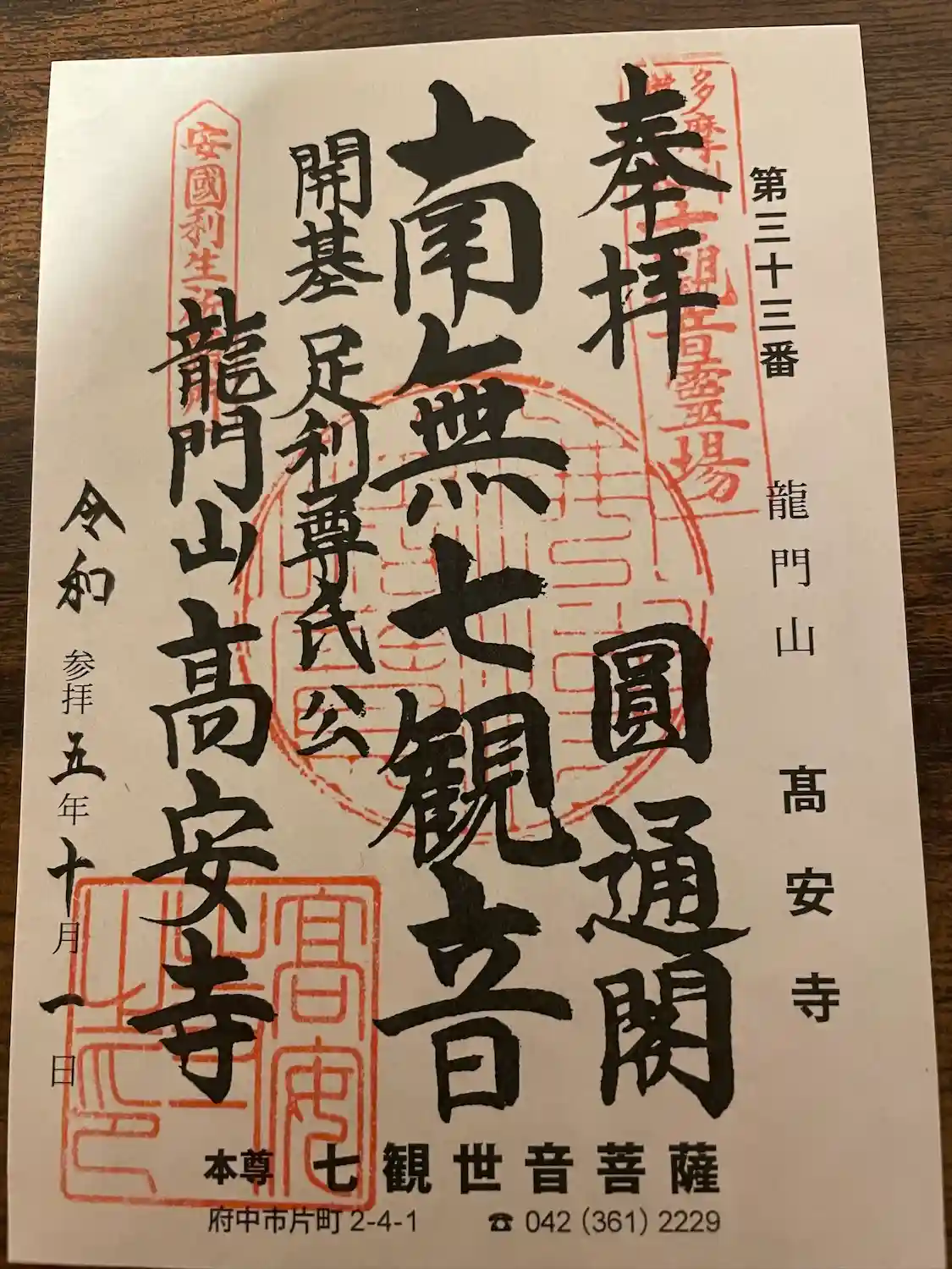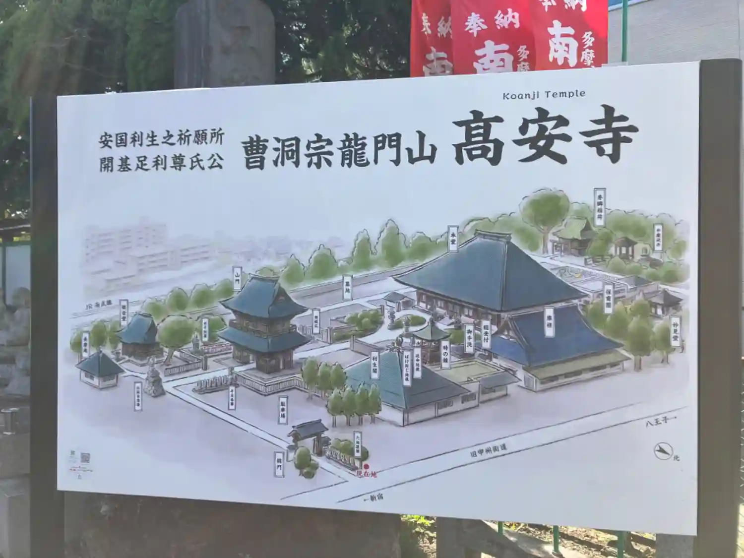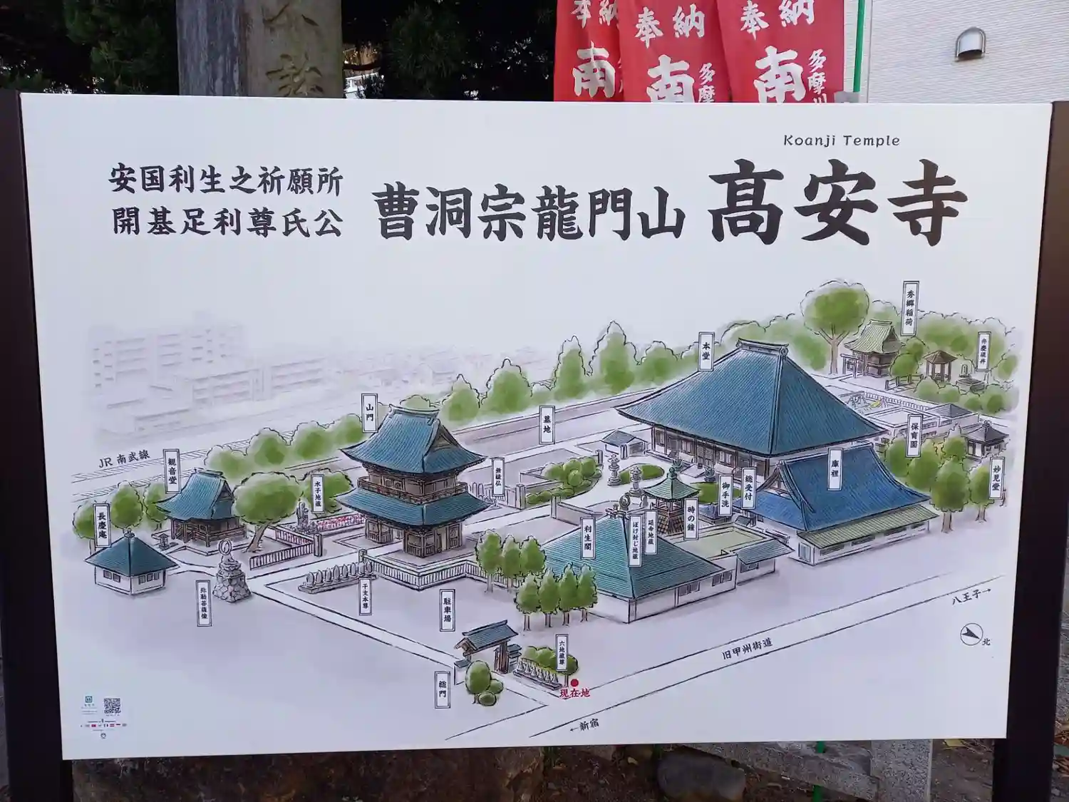 京王線分倍河原駅から旧甲州街道を府中駅方向へ徒歩で5分ほどです。かなり立派なお寺です。書き置きの御…