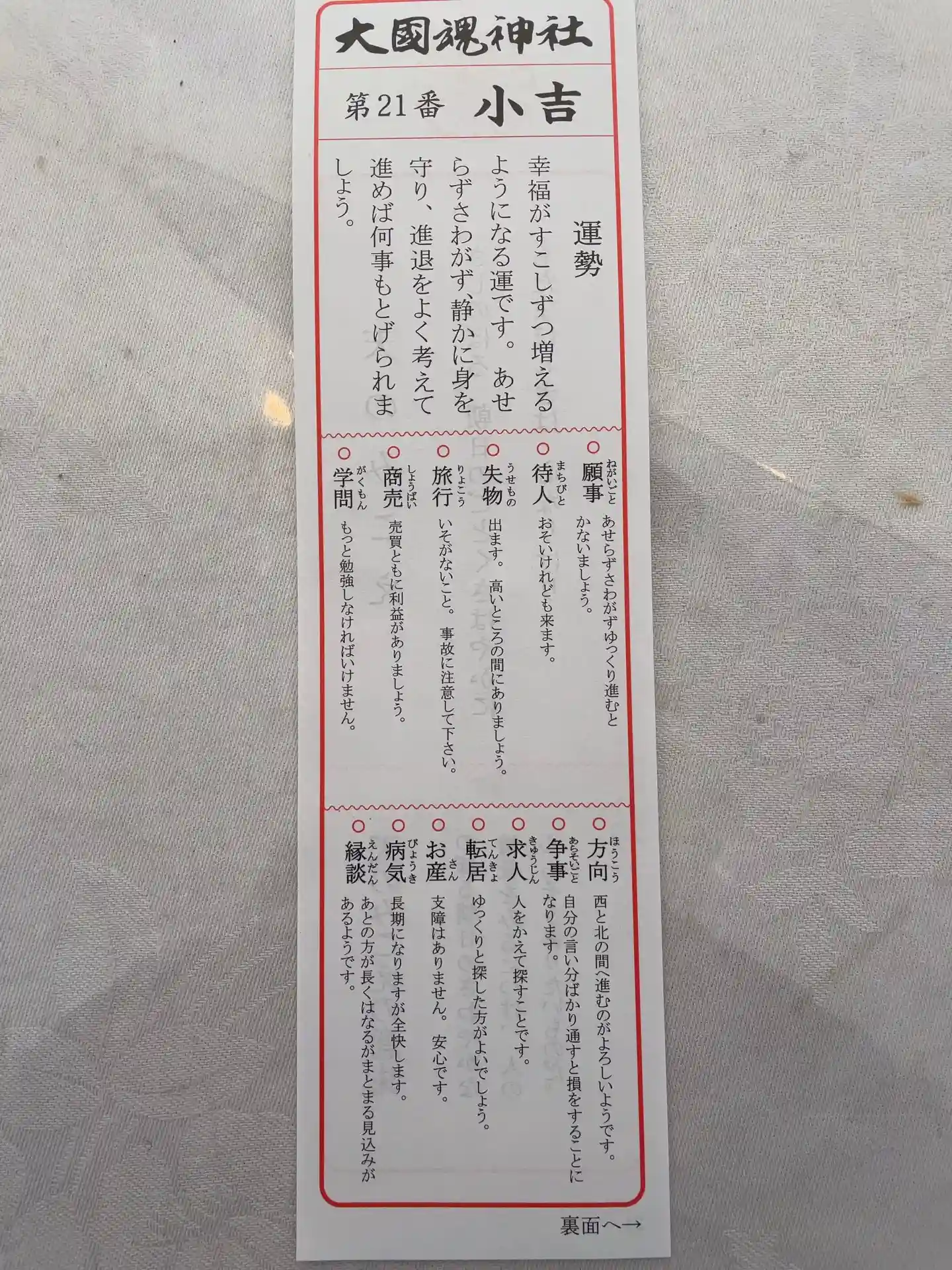 開運紙札もいただきました。