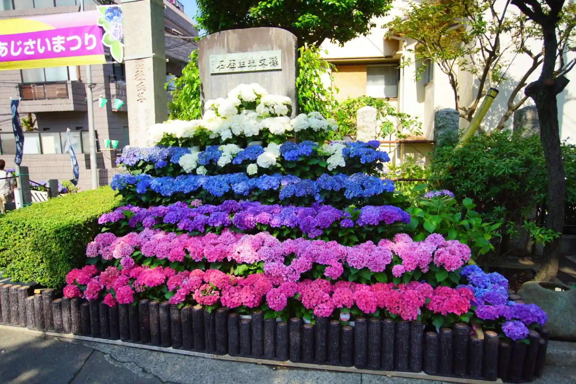 あじさいまつり開催していました。いろいろな紫陽花が綺麗に咲いていました。