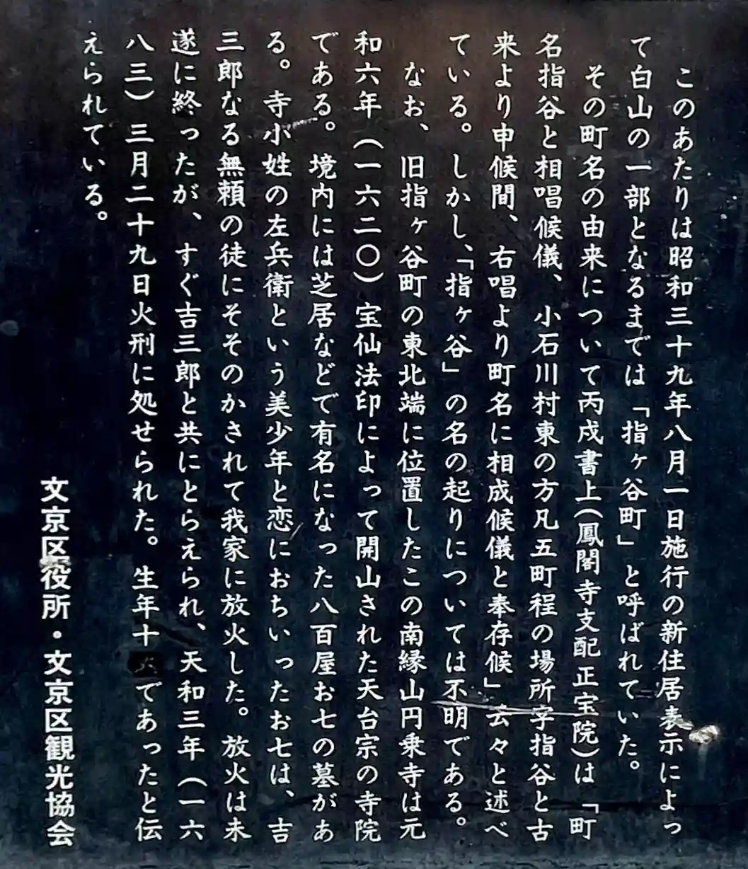 江戸時代、想い人に逢いたいがために放火してしまい火あぶりの刑に処されたという「八百屋お七」のお墓があることでも有名です。