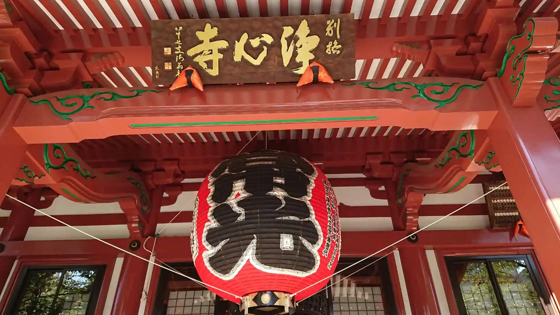 山門をくぐると、目の前に立派な朱色の本堂があります。