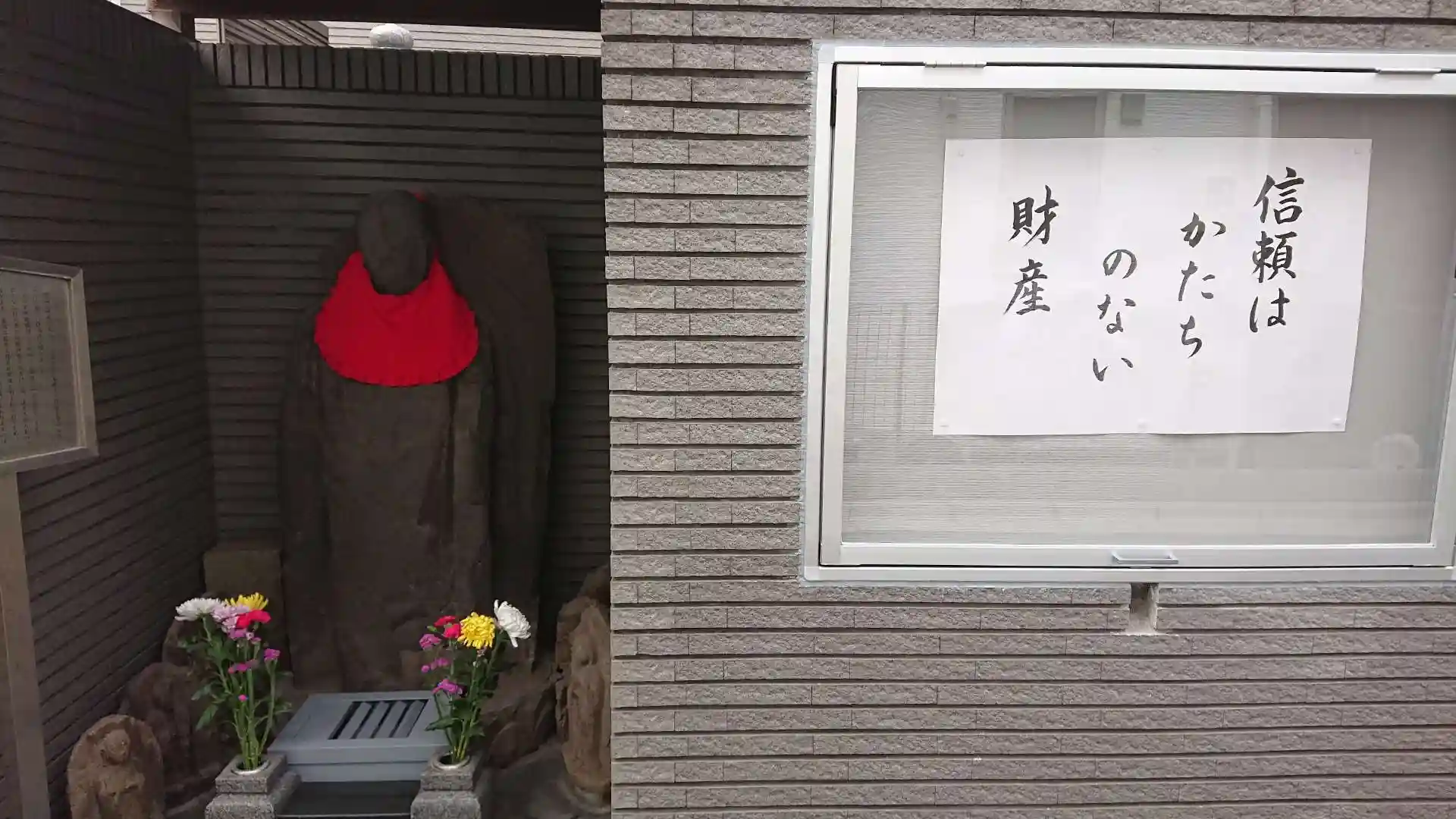 安閑寺から徒歩で5分ほどです。マンションの1階に収まっています。こちらも残念ながら、お地蔵様へのお参りでした。