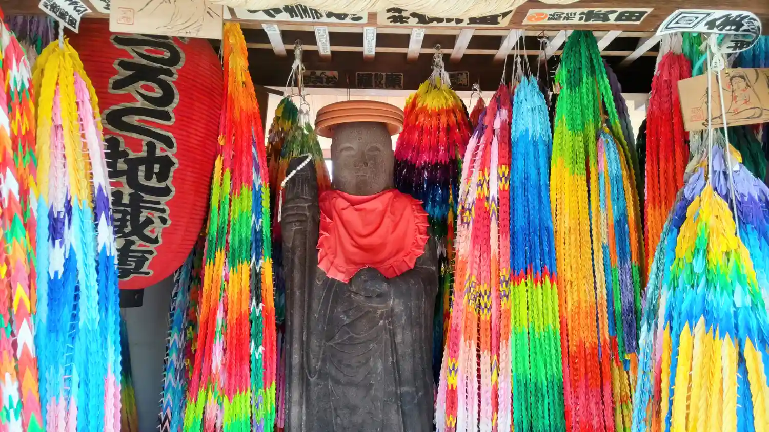 その千羽鶴に囲まれたほうろく地蔵様は歌舞伎の題材…
