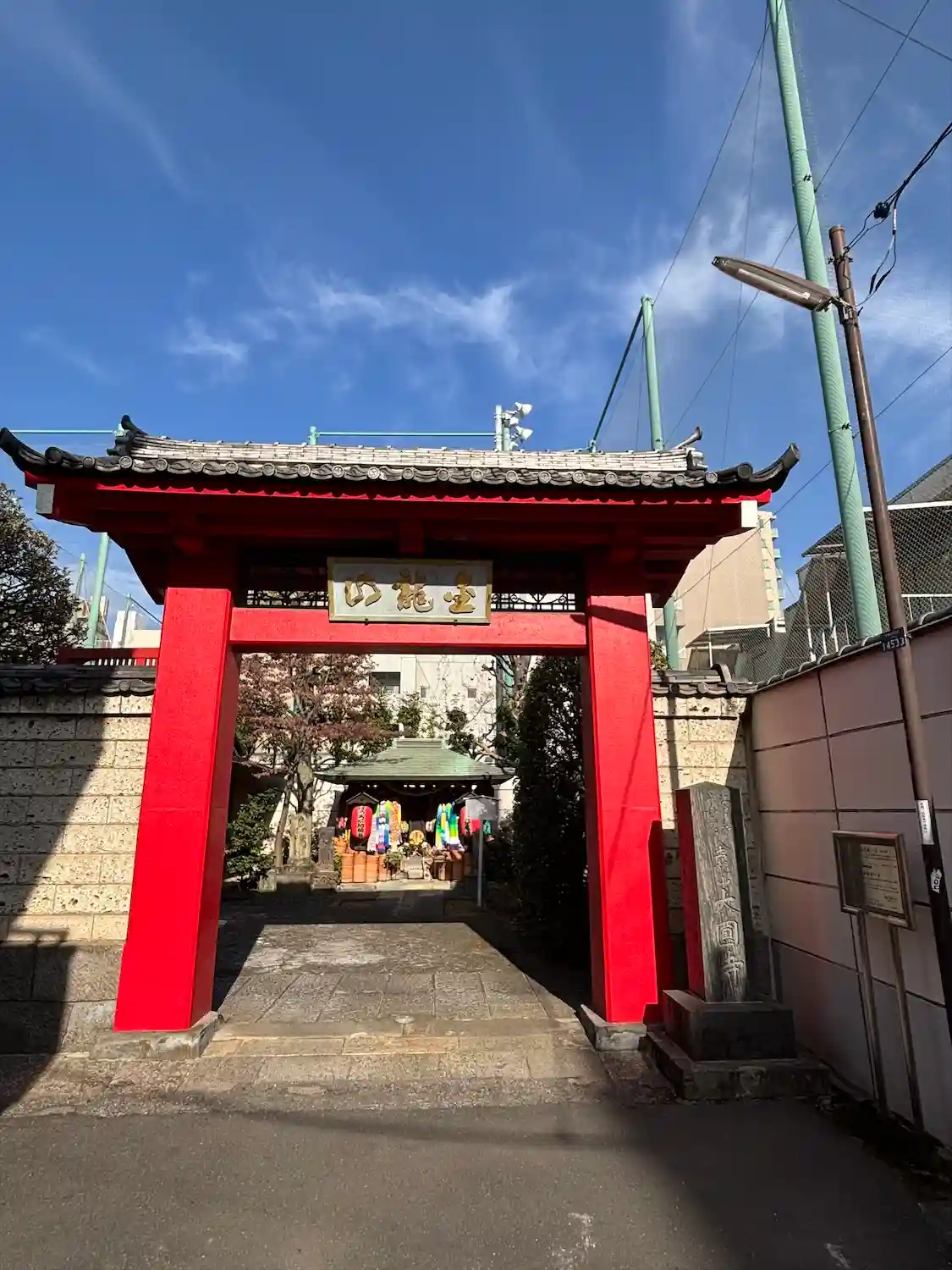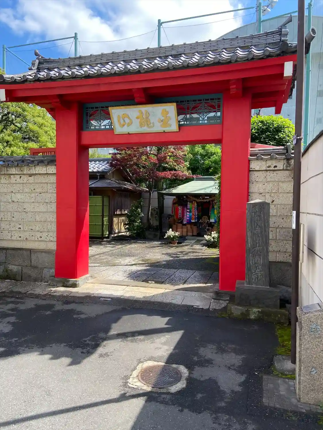 入り組んだ住宅地の中にありますが、紅い門が目印です。