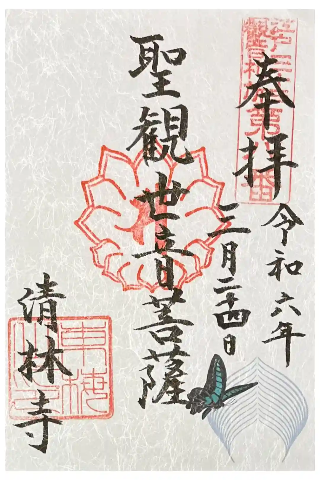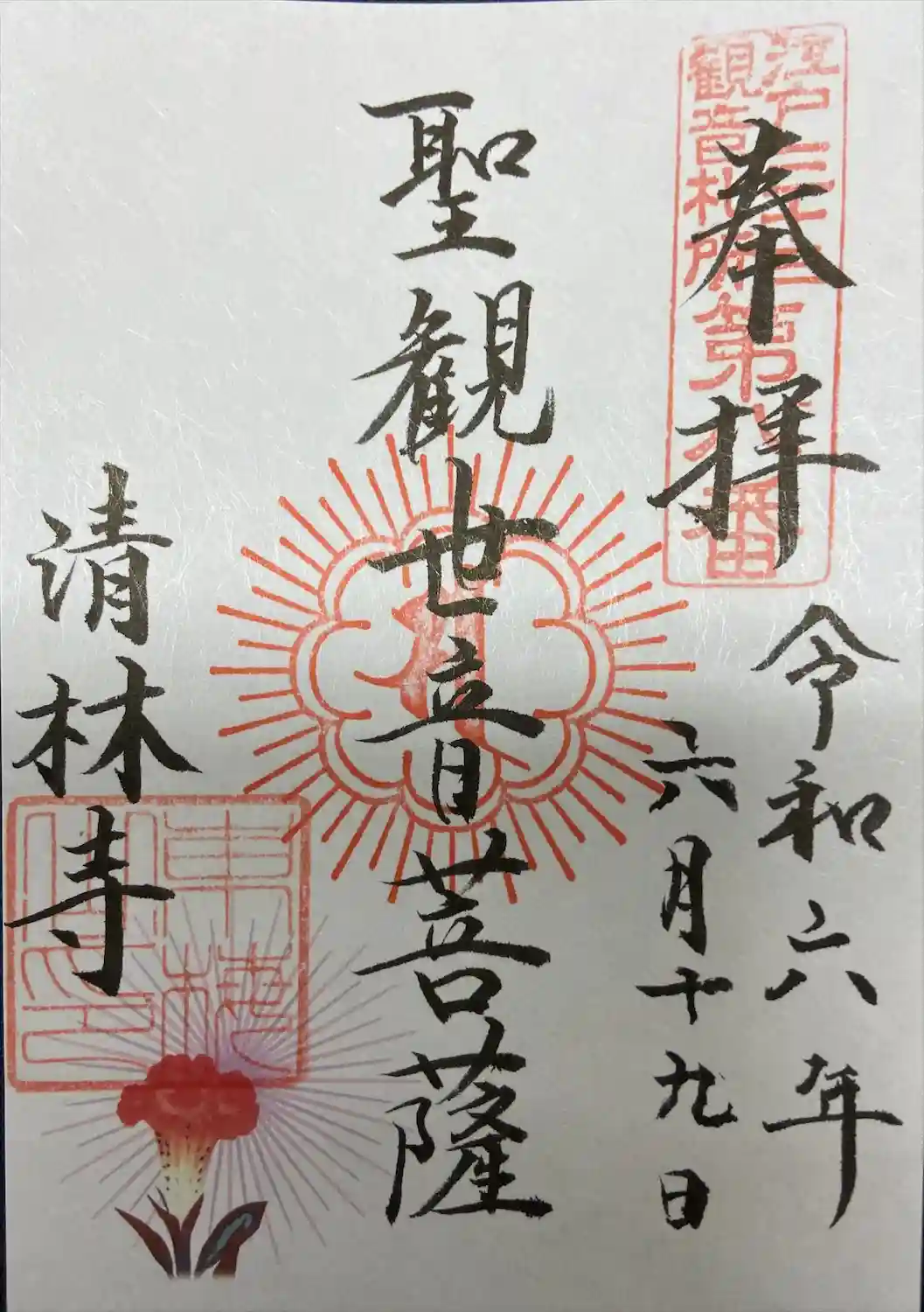 江戸三十三観音の八番札所、清林寺さんの聖観世音菩薩様の御朱印です。