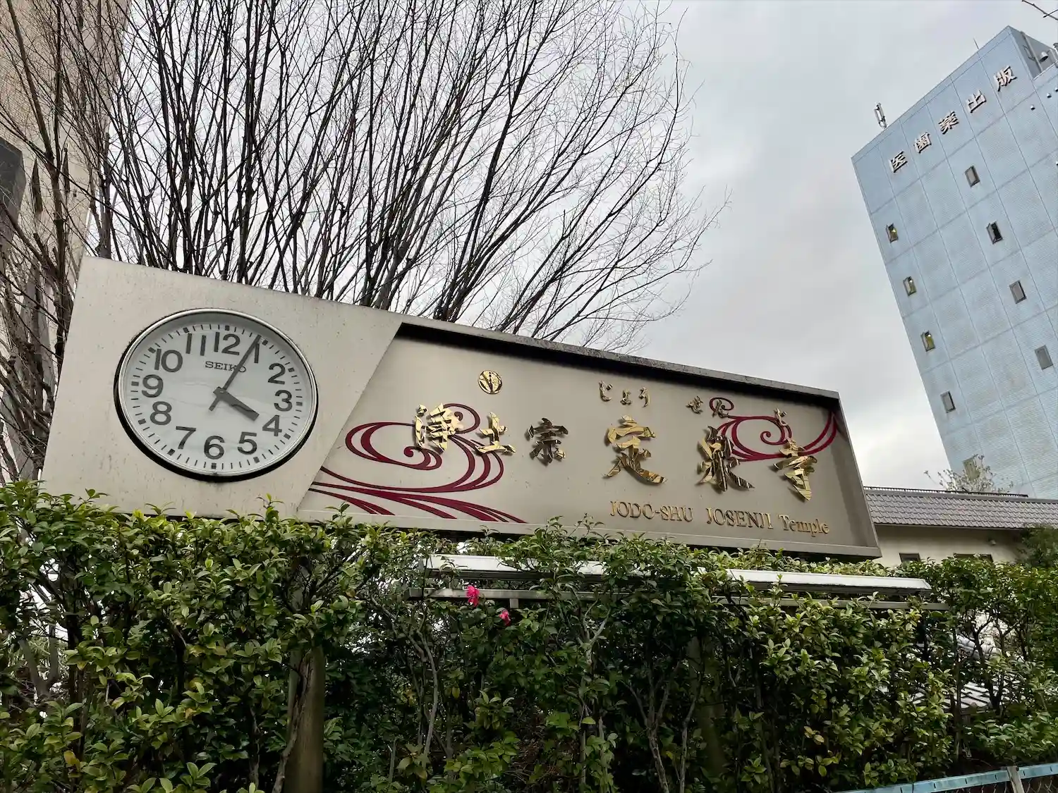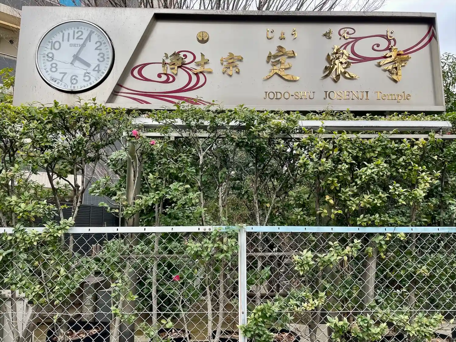 時計付きのお寺の看板も珍しい。