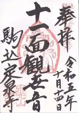江戸三十三観音の九番札所、定泉寺さんの十一面観世音菩薩様の御朱印です。
