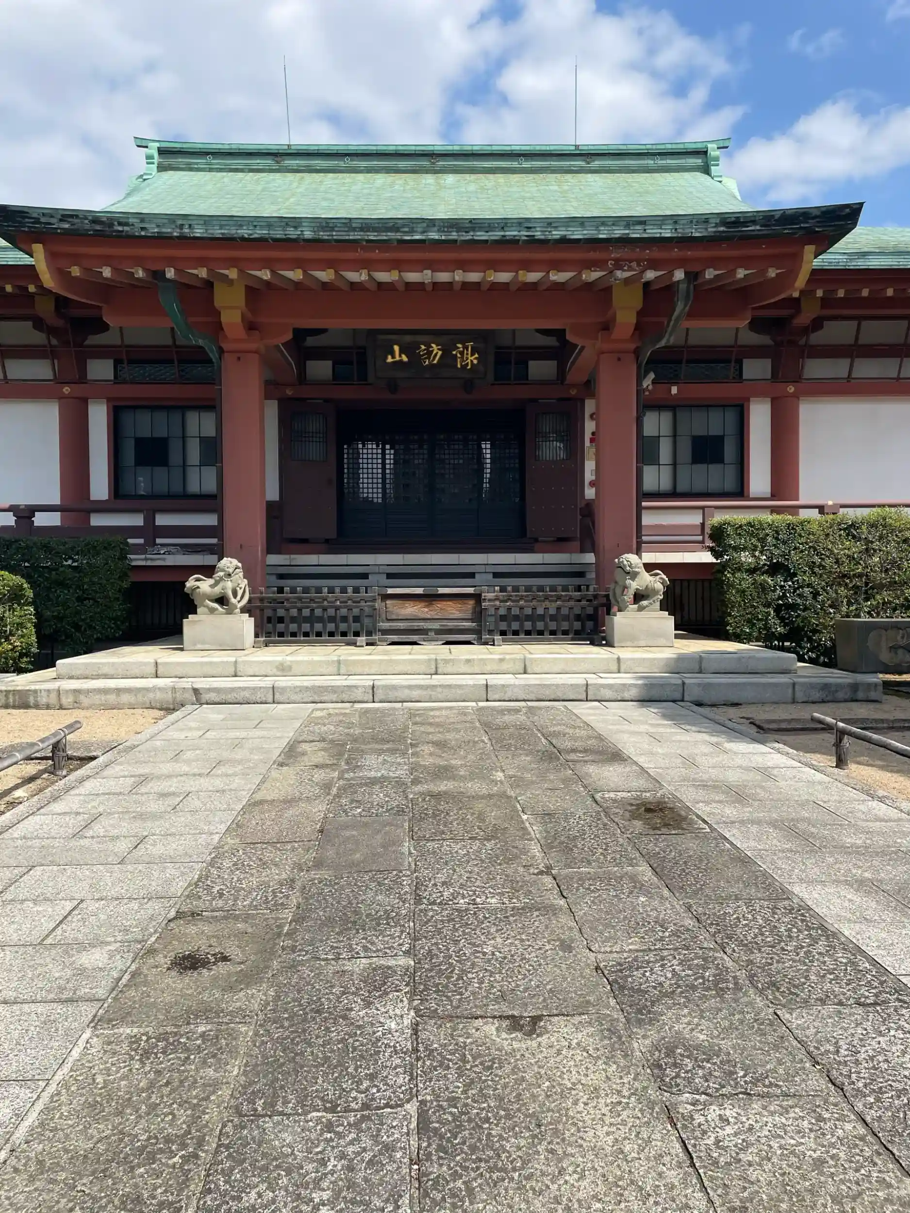 山号の「諏訪山」はこの地が諏訪神社の社地であったことに由来する。