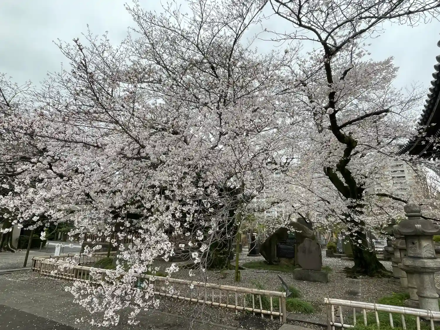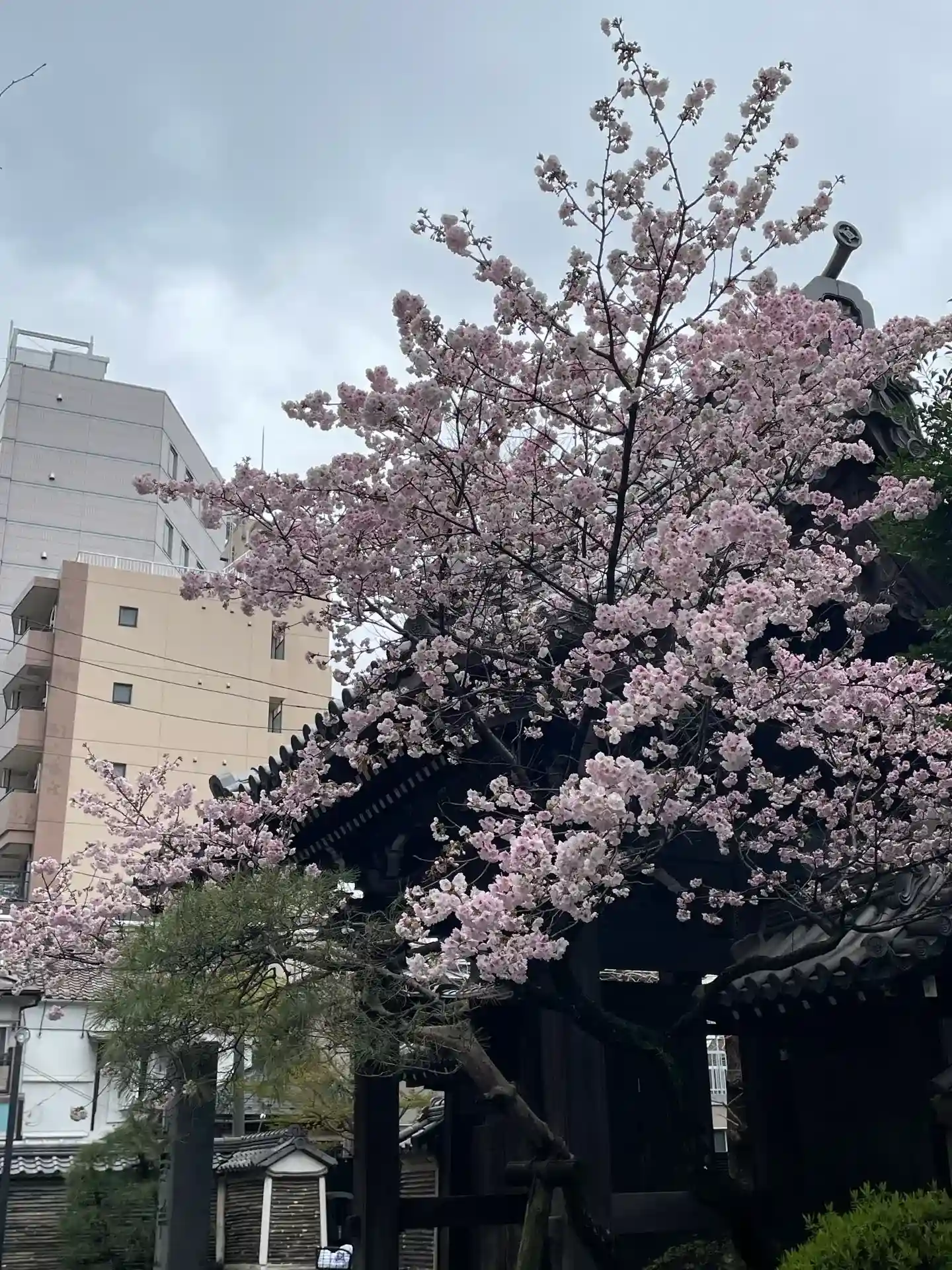 本駒込の駅から駒込富士神社⛩へ向かう途中で出会ったお寺。山門から覗くと凄い桜🌸の数々。誘われるよう…