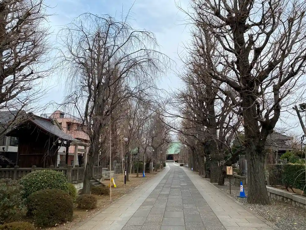 山門をくぐったところ。都内屈指の長い参道。