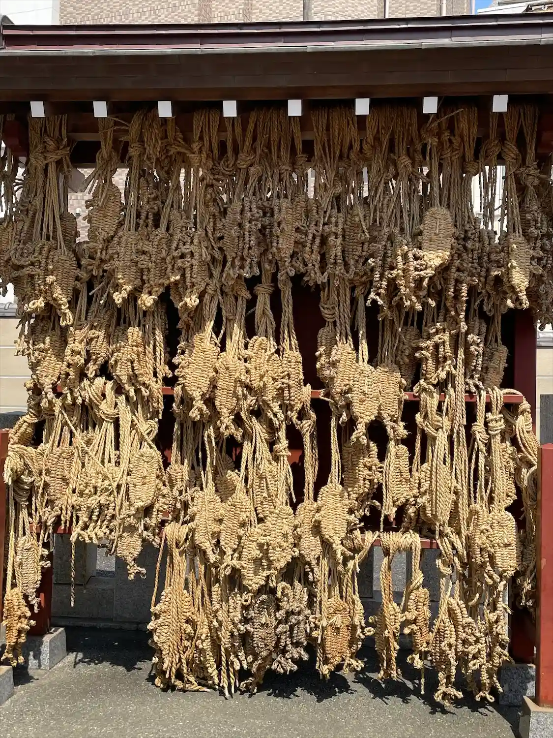 参詣客が赤紙を貼る理由は、そのようにして祈願すれば病気が治ると信じられてきたからで、具合の悪い部位と同じ箇所に赤紙を貼るのが慣わしです。