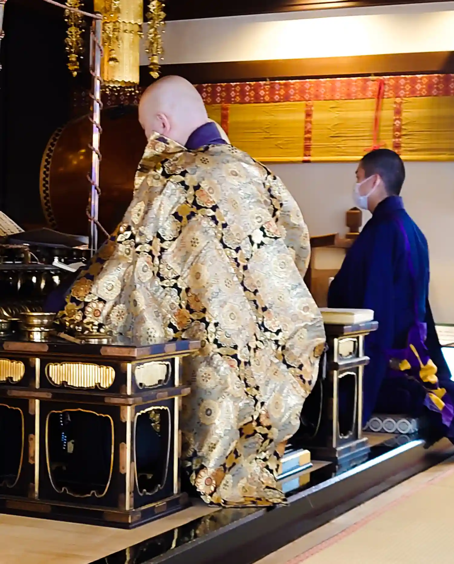 本日は特別な法要なんで助法のお坊さんもきていて、ご住職の袈裟がまたピカピカゴージャスでした(笑)