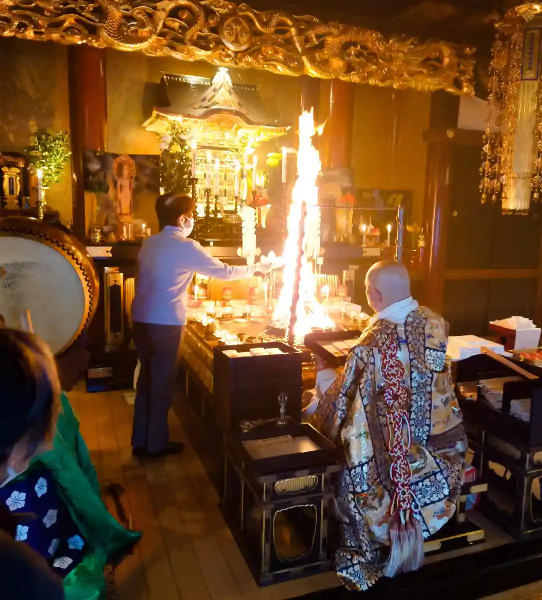 護摩も含めてお坊さんの装束見るのが好きなので、いつもと違うと気になりますね(笑)