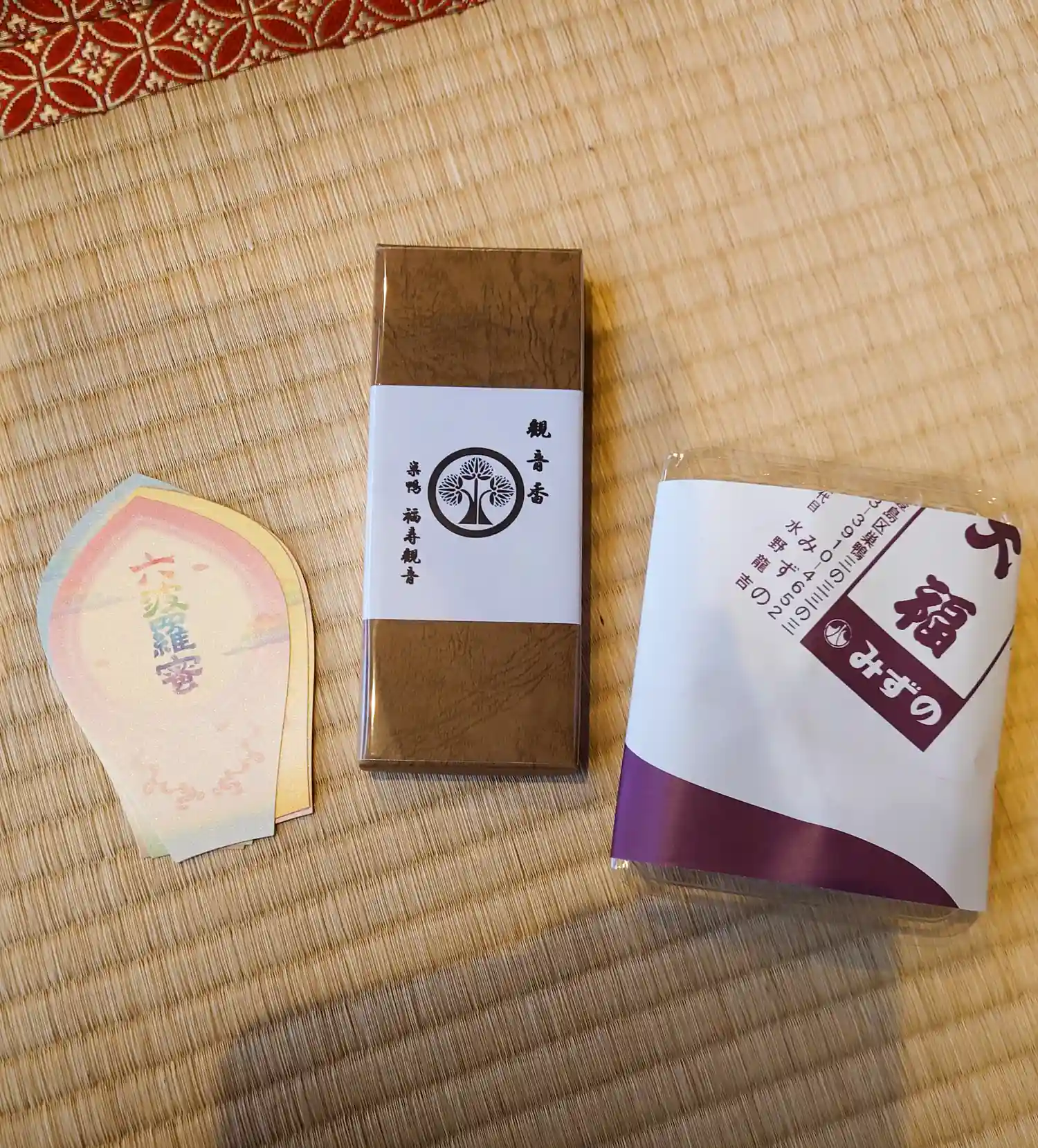 ぼたもちと福寿観音のお線香、それに六波羅密の散華でした!
