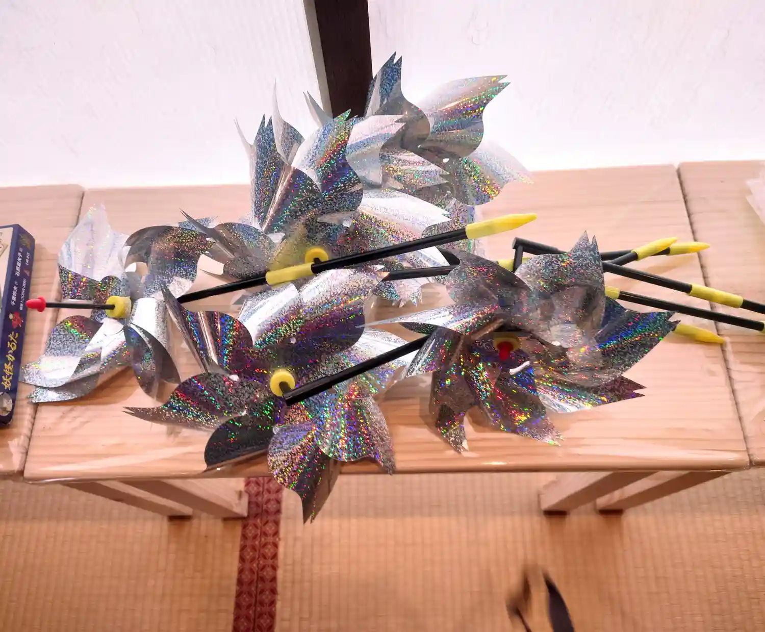 差し入れしかざぐるま🌬️🌀 台風で被害受けたみたいですが、現在は金魚🐟️💗のいる蓮の辺りに幾つかつけていただきました🎵
