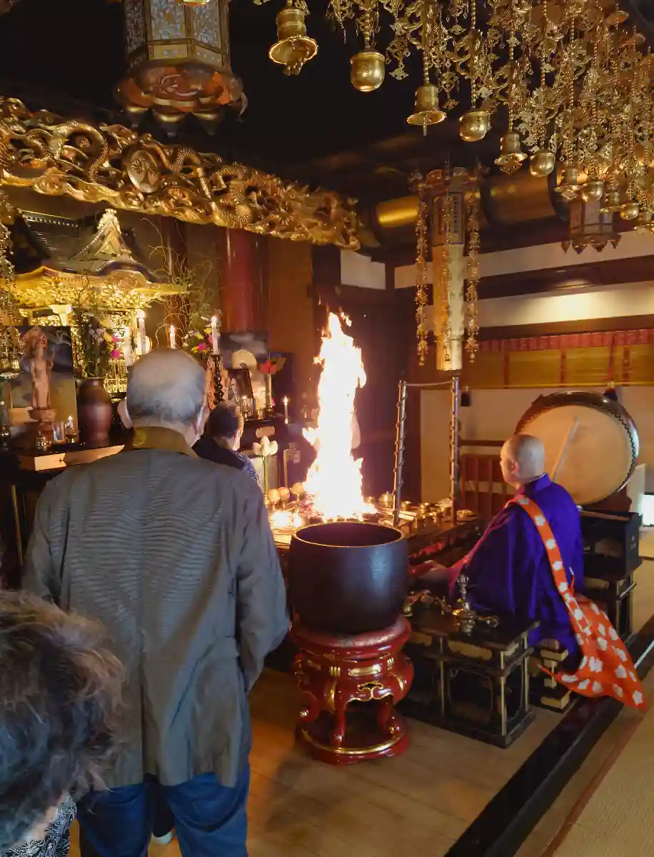 朝の8:00の護摩は空いていてすごくおすすめ。11:00は交流にオススメ(笑)