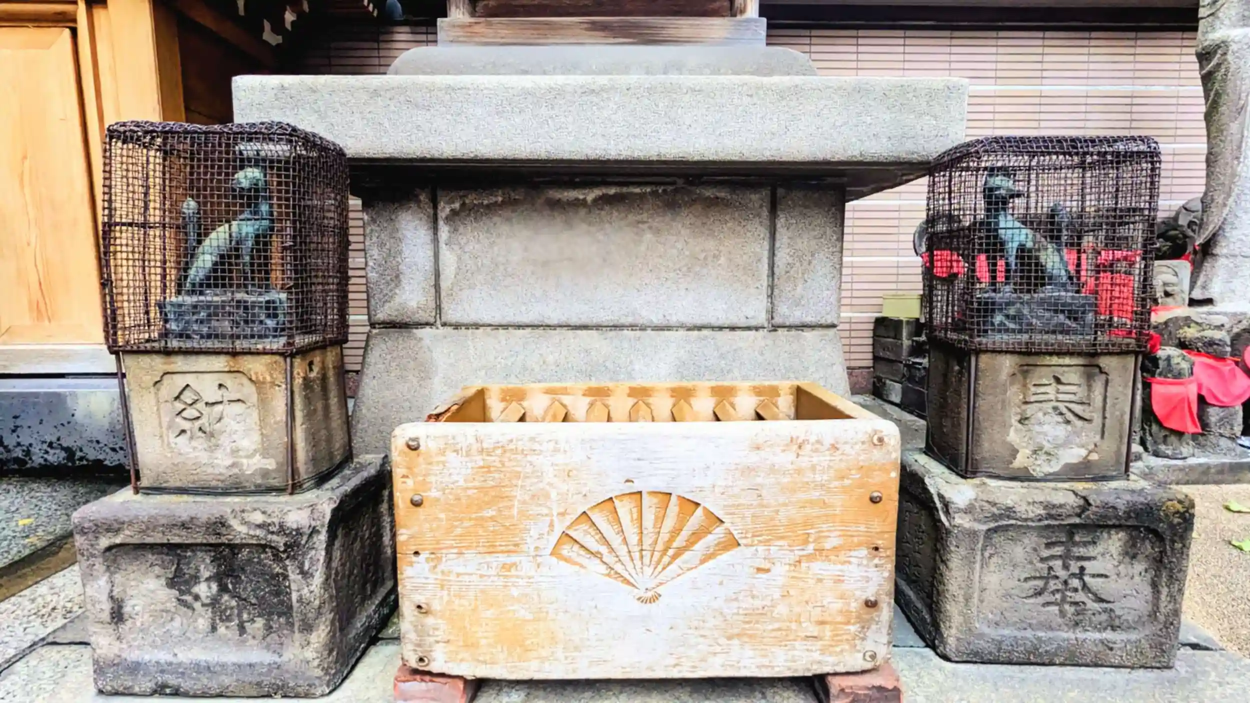 コンクリート製の鳥居と、キツネ一対に護られた小さな御厨子に「小僧稲荷」が祀られています。