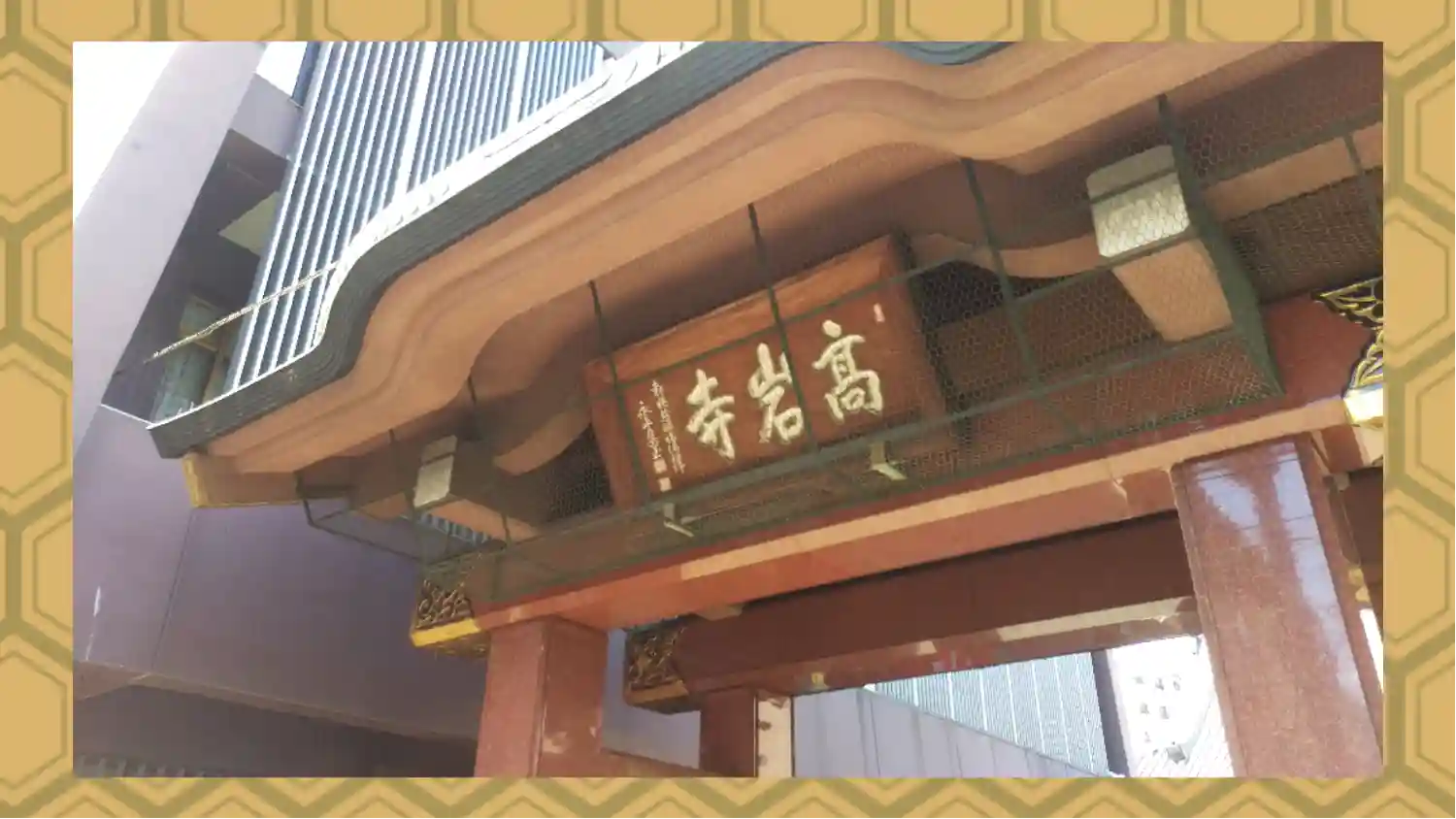 地蔵通りに面して立つ髙岩寺の山門はつねに開かれています。「萬頂山•髙岩寺」「とげぬき地蔵尊」の紅白ちょうちんは令和2年完成。