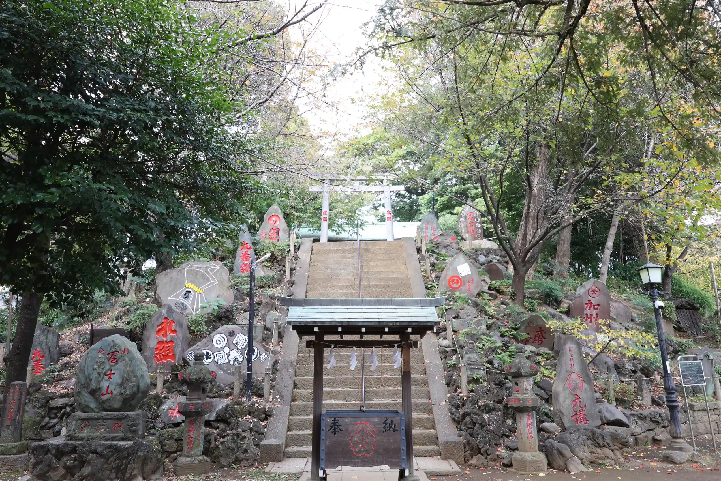 まずは駒込富士神社さん🗻✨拝殿は富士山に見立てた富士塚の上にあります!小さい山ですが急な石段を前にそびえ立っている迫力を感じます✨江戸期の富士信仰の拠点の一つとなり、現在に至るまで「お富士さん」の通称で親しまれているそうです🤗