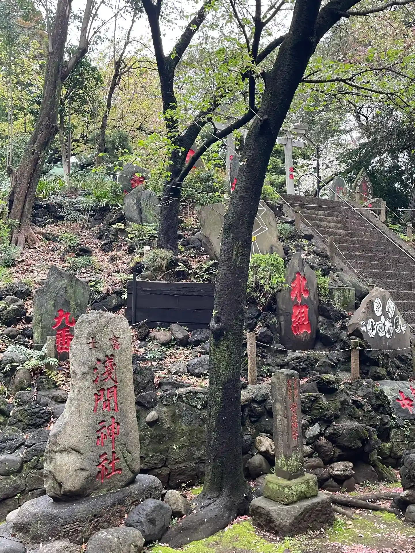 富士塚の石段と石碑