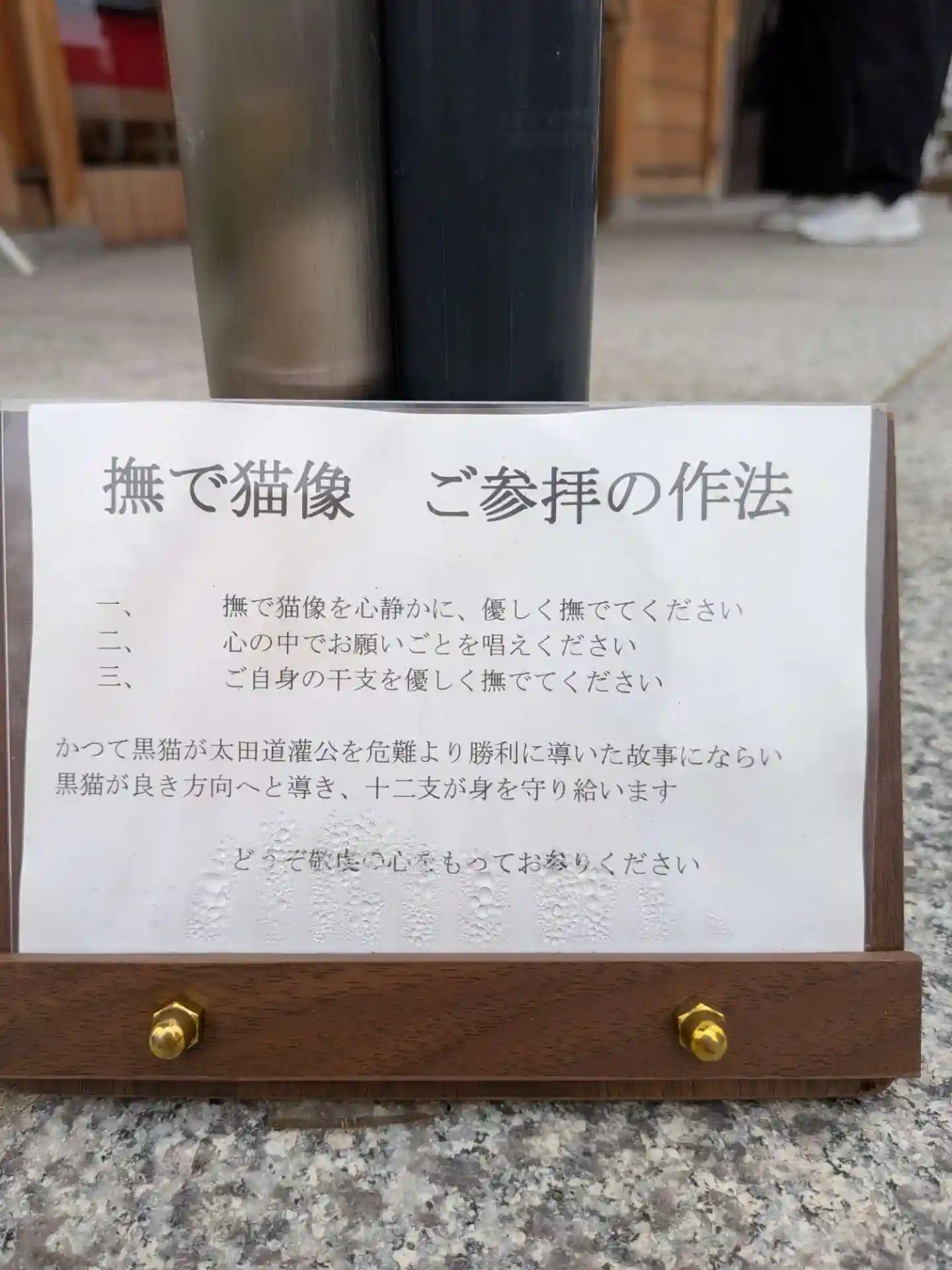 撫で猫像を撫でながら願いを伝えます。