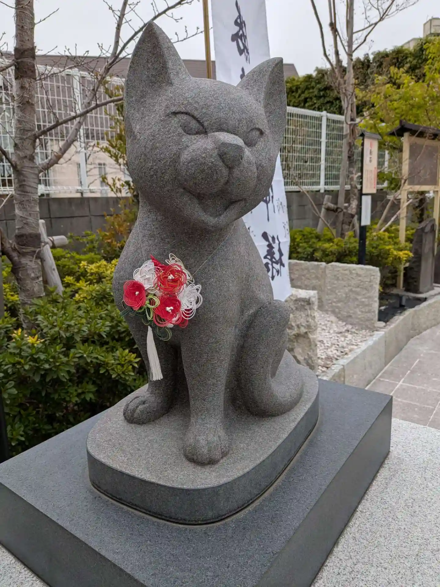 新しく設置された撫で猫像