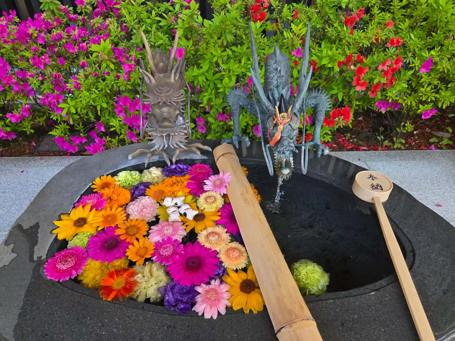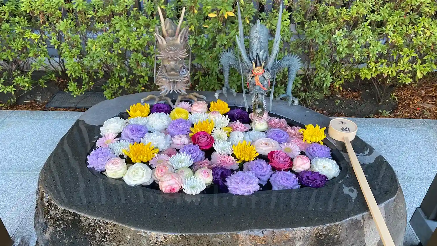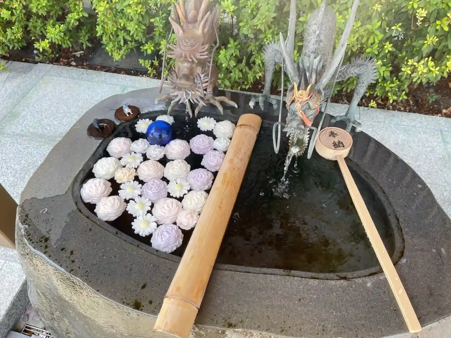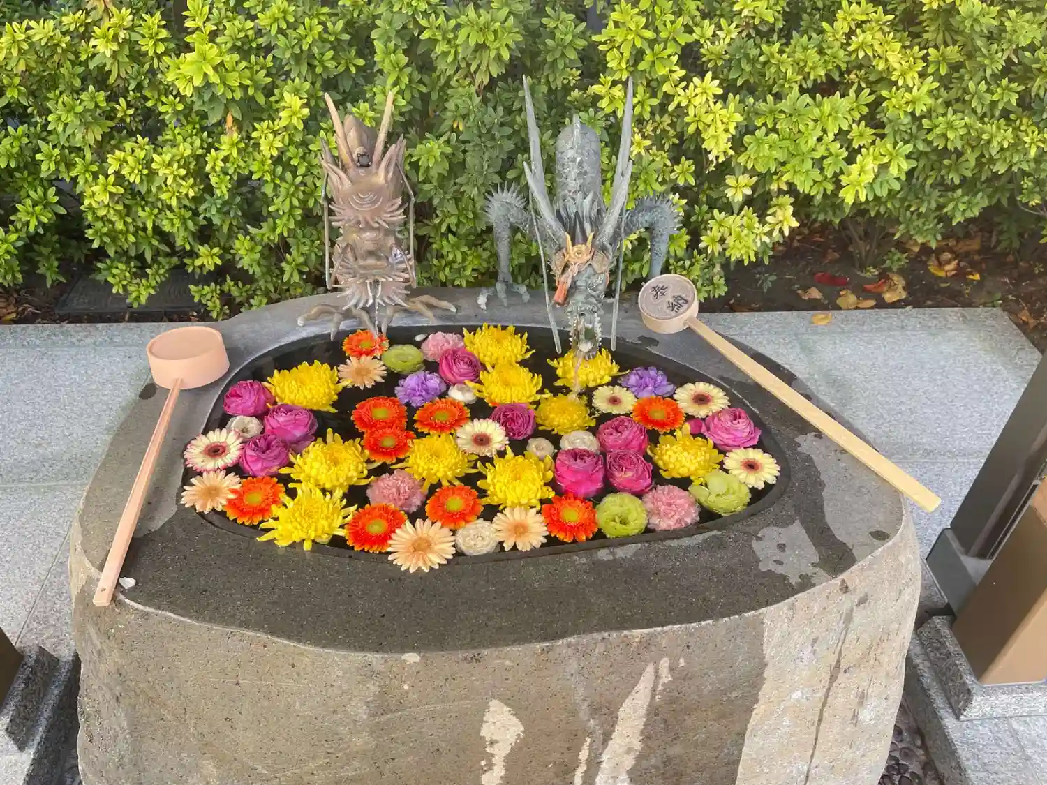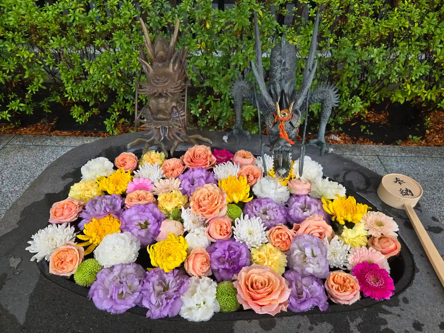 花手水きれいでした🌸🌼💐