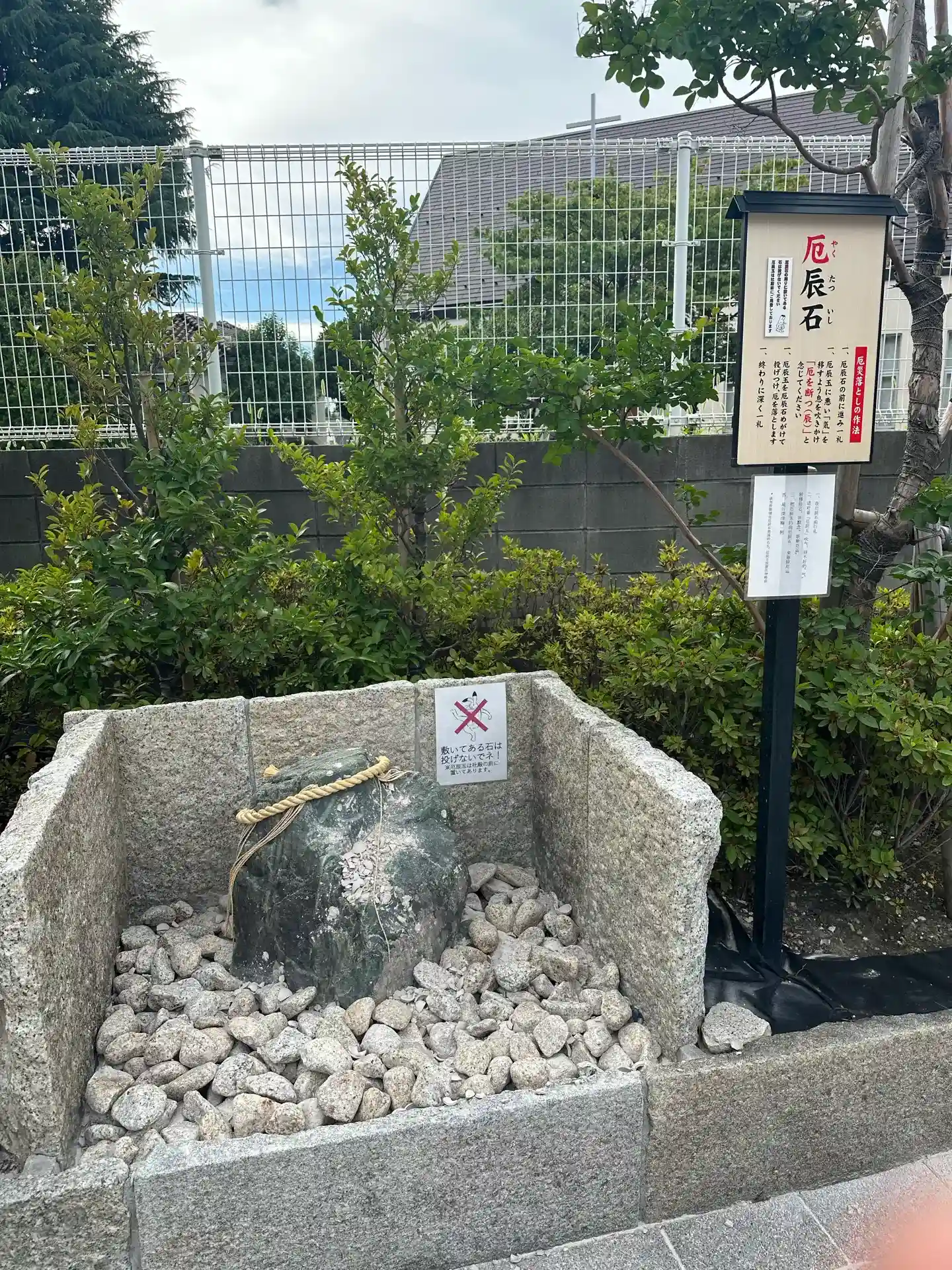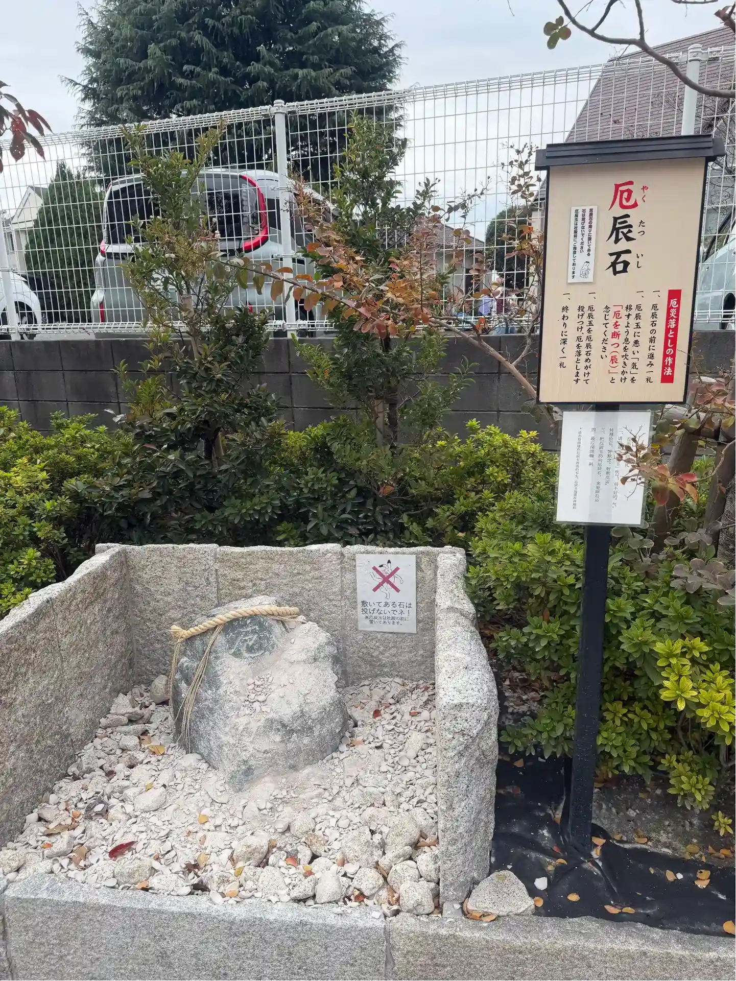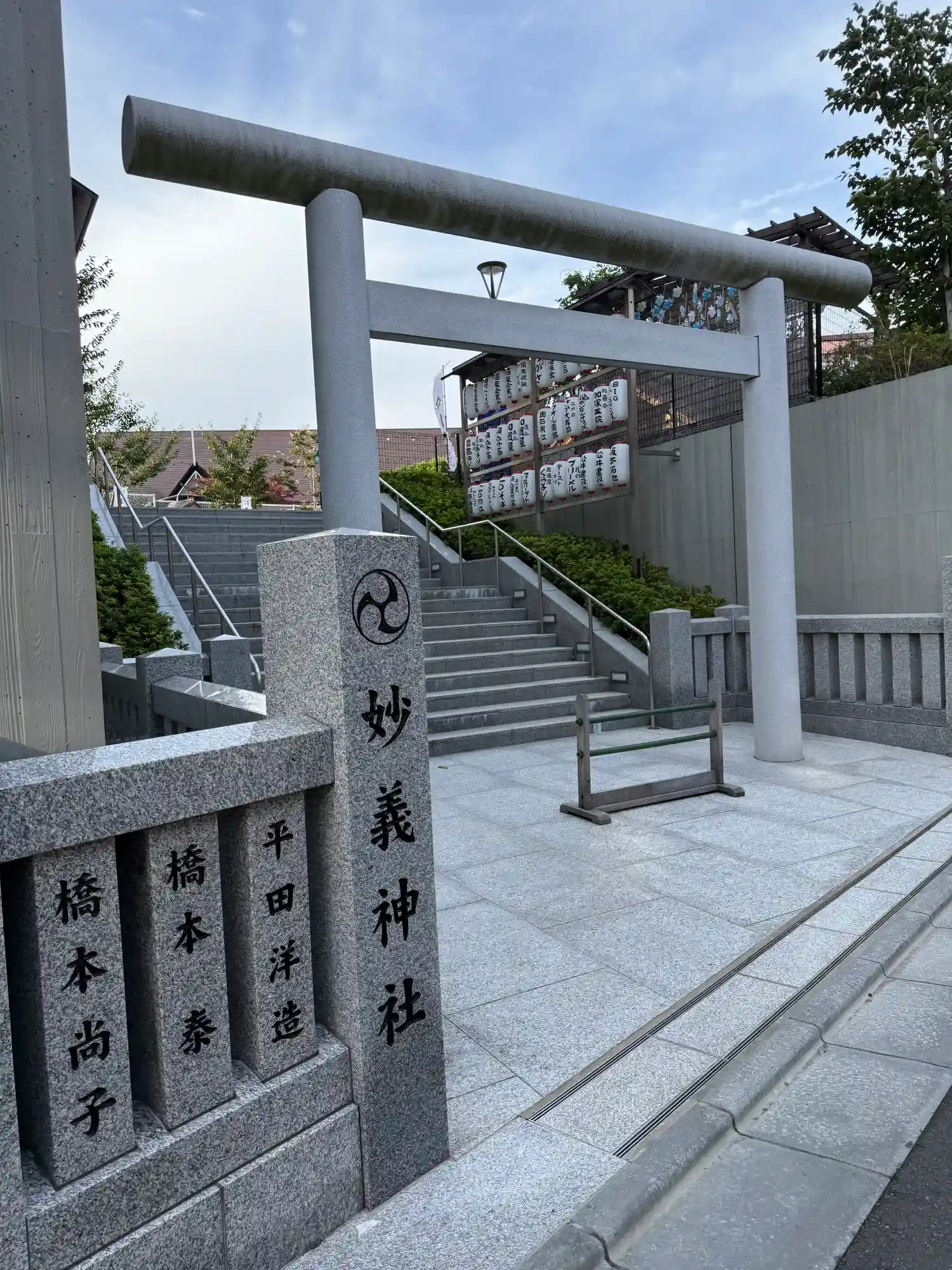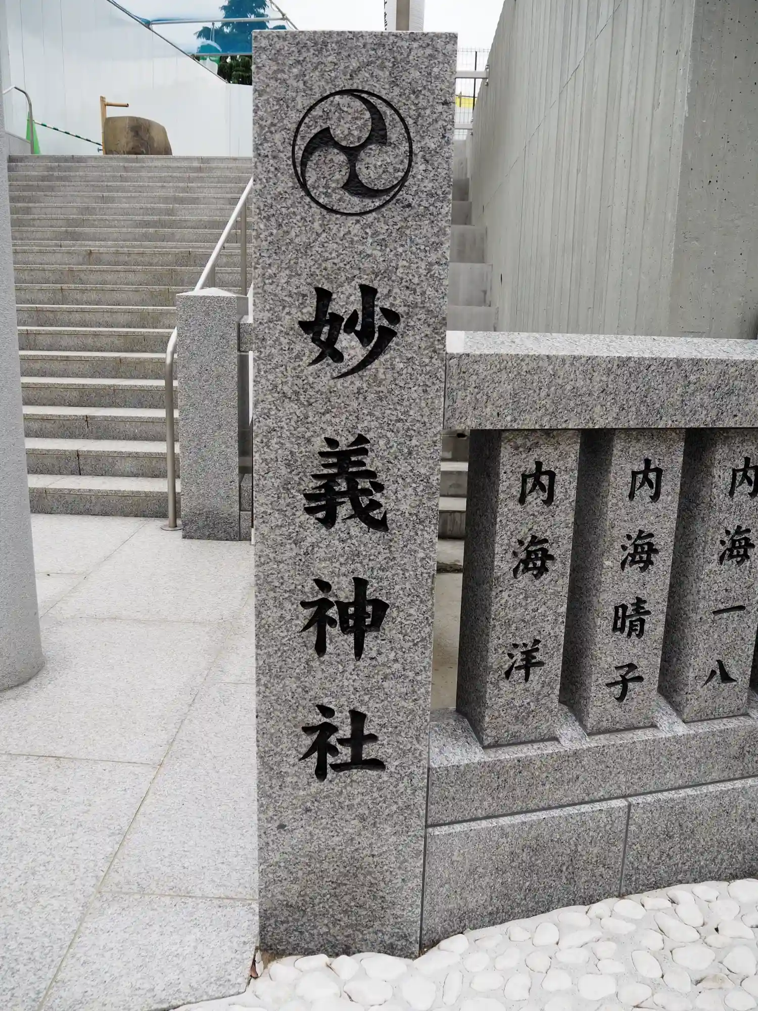 玉垣に連なる社号標