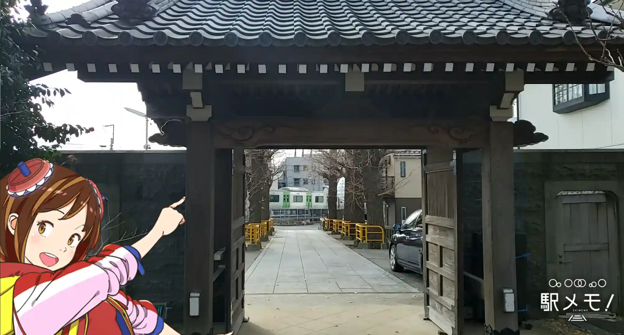 山門越しに山手線が見えます