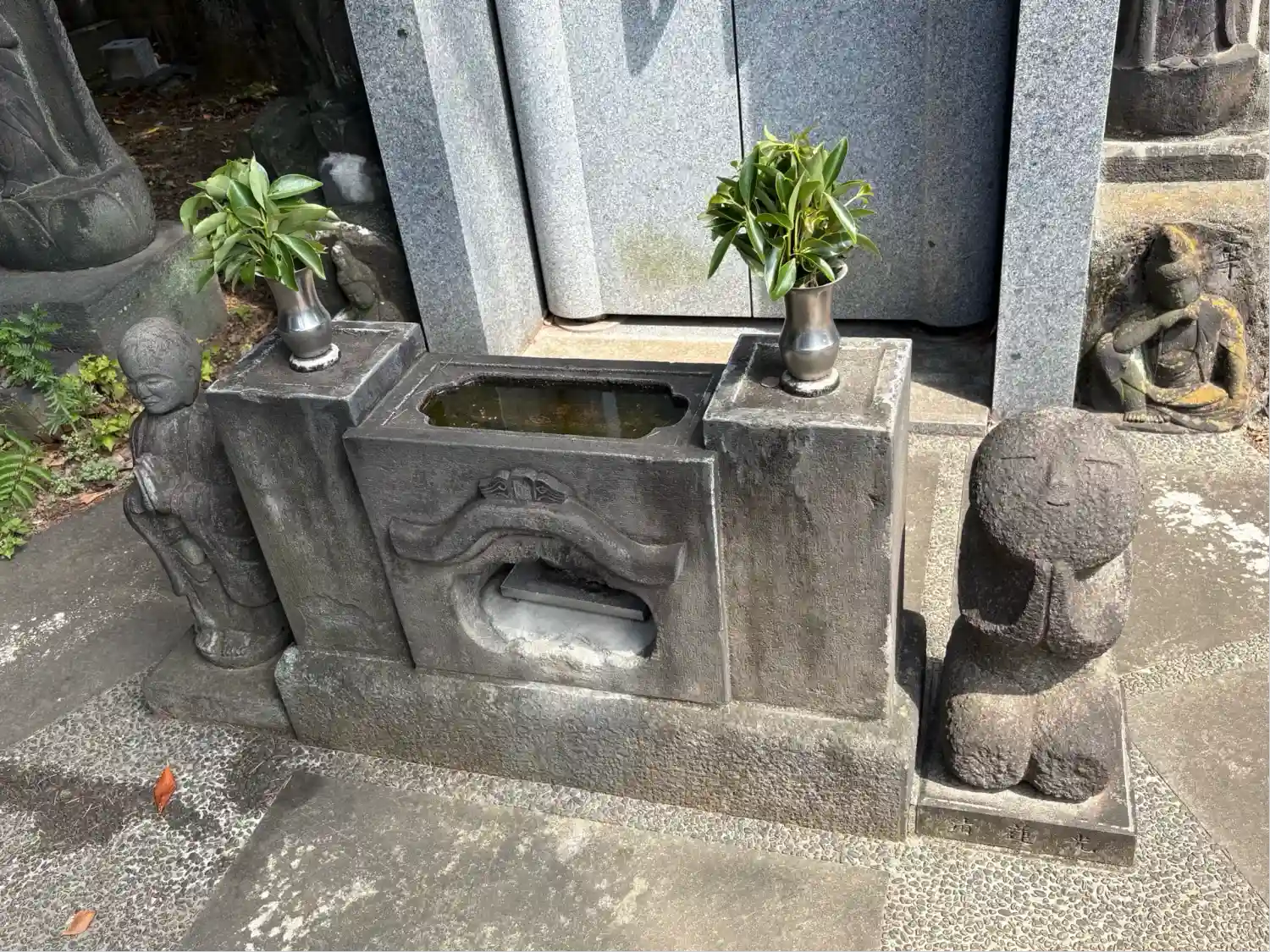 永代供養塔の側面に掘られた石像が印象的でした。