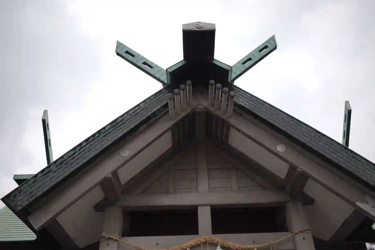 コンクリートでできた社殿。神社自体の由緒は孝昭天皇の時代にさかのぼるらしいものの、果たして……。