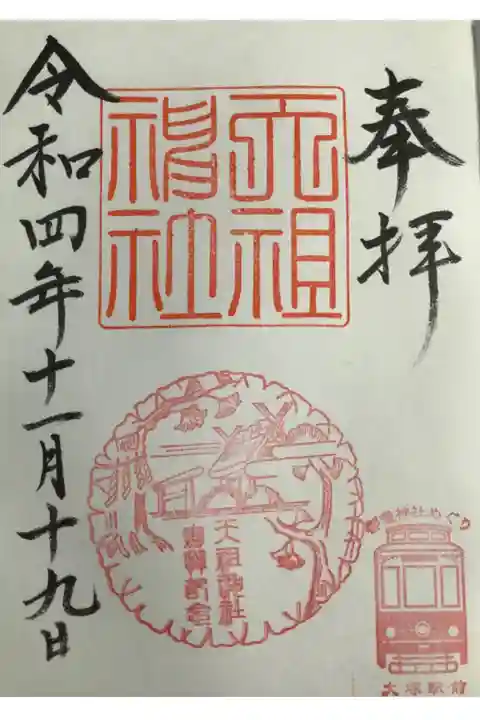 ウォーキングの後で参拝する機会がありました。都電神社巡りをやっていました。