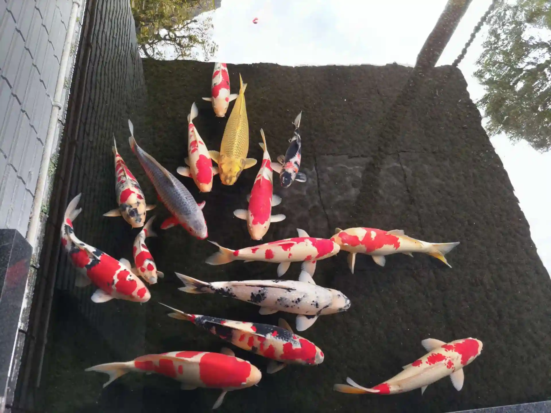本坊(寺務所)前の錦鯉。大きくて美しいです。