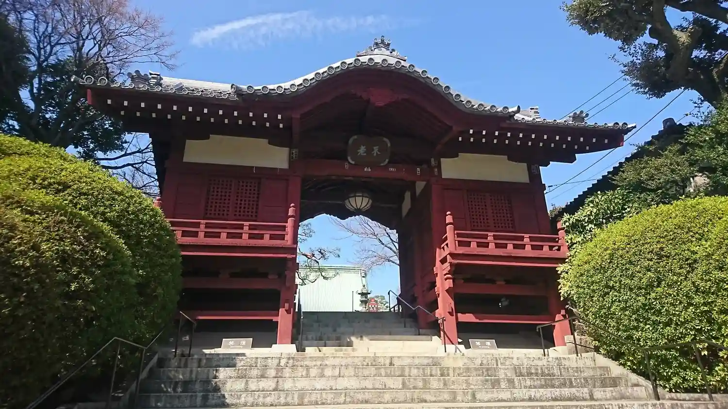 仁王門をくぐると、両サイドに手水舎があり階段上に<不老門>がある。