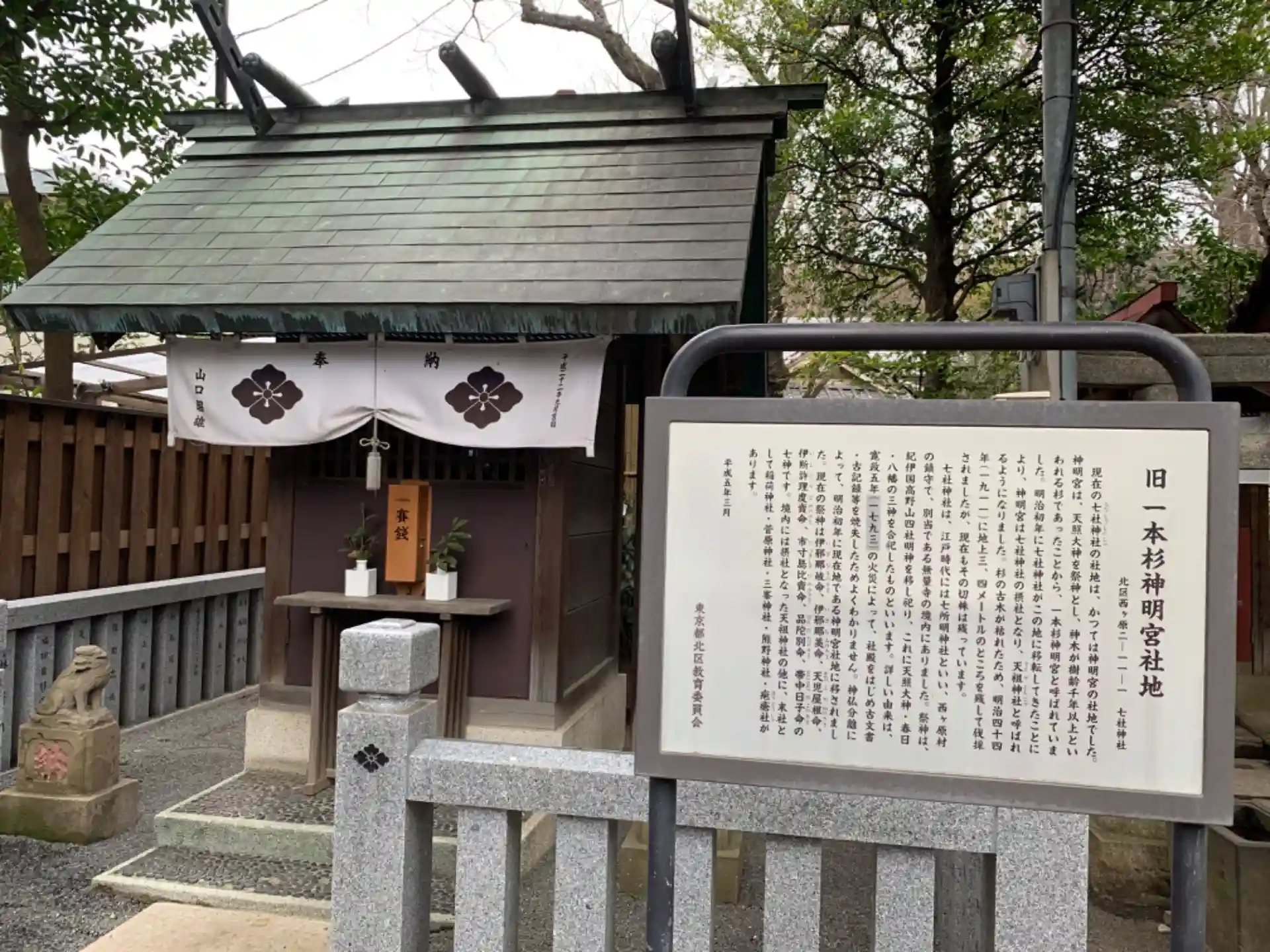 七社神社は、江戸時代には西ヶ原村の鎮守で、無量寺境内の高台、現在の旧古河庭園内にありました。 明治初年に、神仏分離により現在の地に移されました。