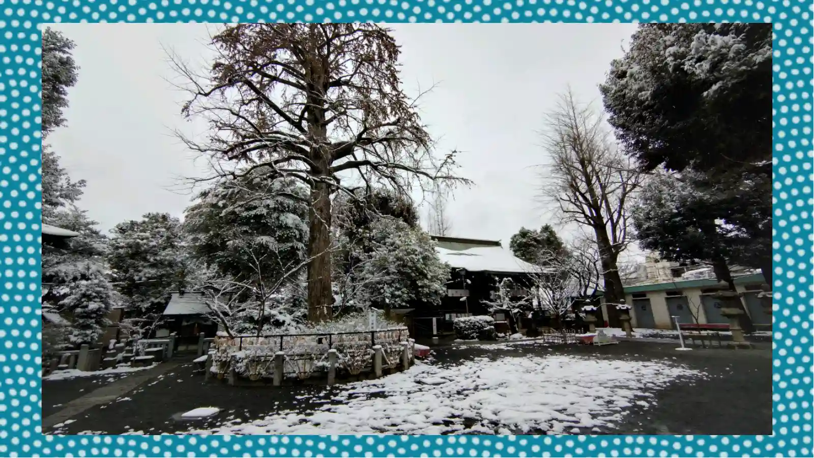 境内には、雪化粧をまとった木々が静かに佇み、心が洗われるような穏やかな時間を過ごすことができました。