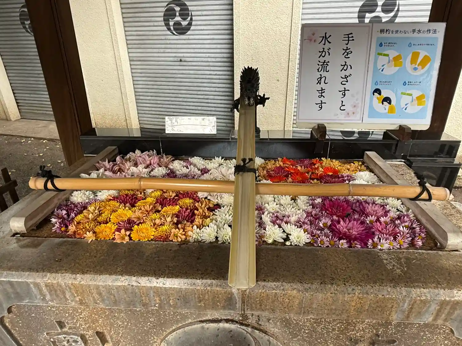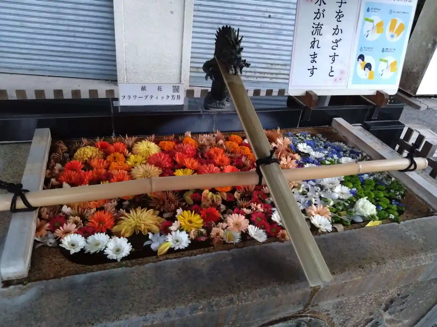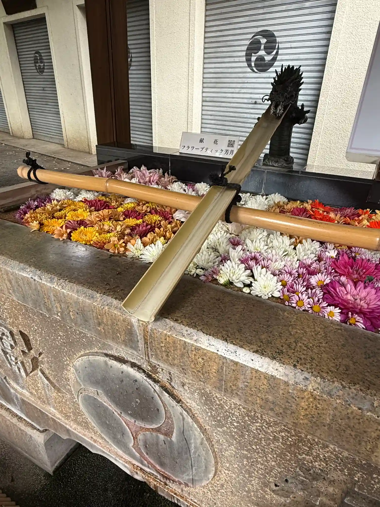 神楽殿では、正月飾りとして、生花が生けられていました。
