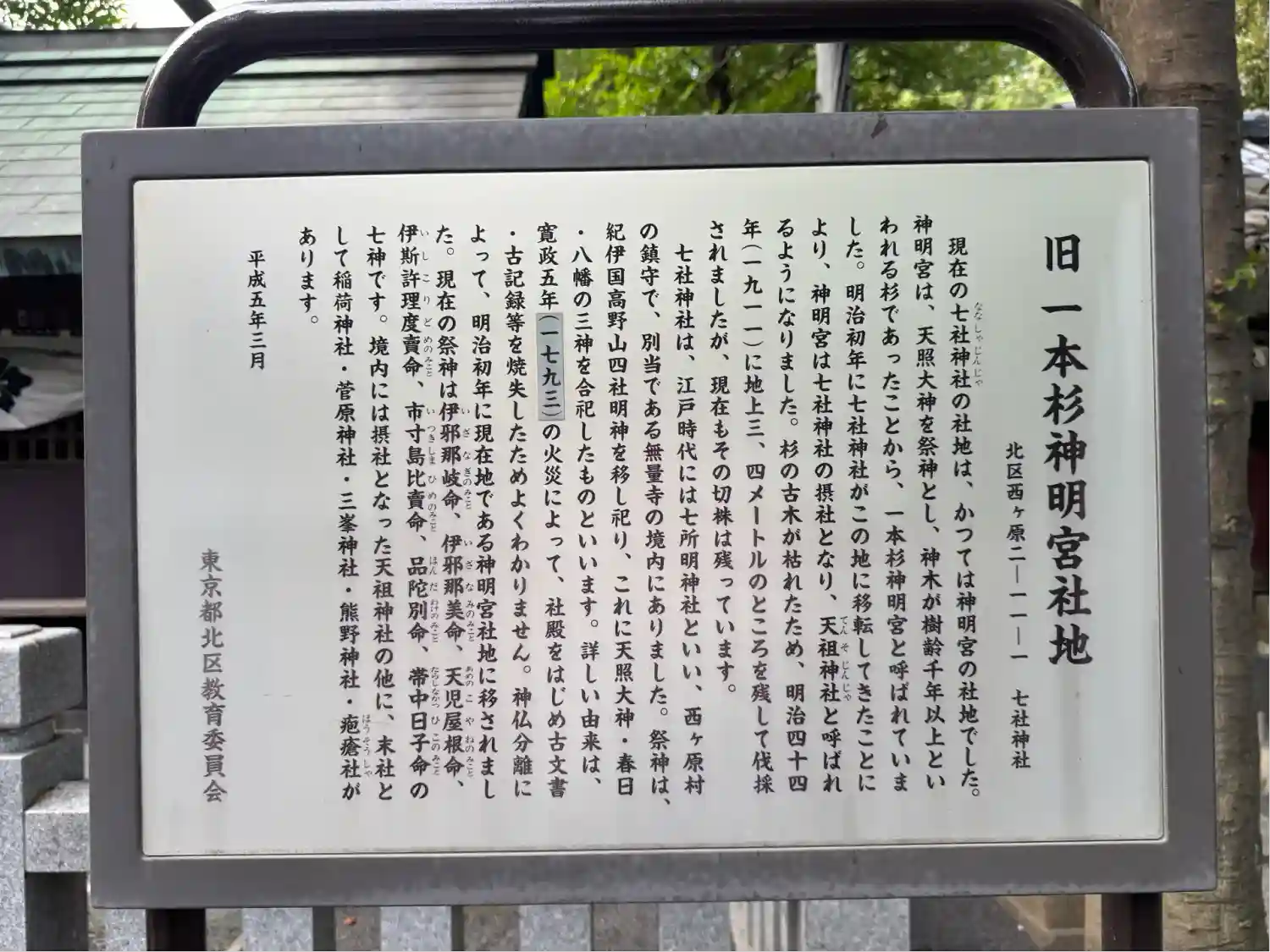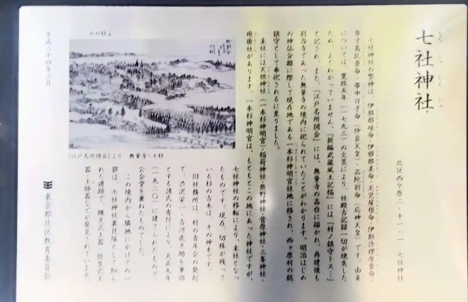七社神社は、江戸時代には西ヶ原村の鎮守で、無量寺境内の高台、現在の旧古河庭園内にありました。 明治…