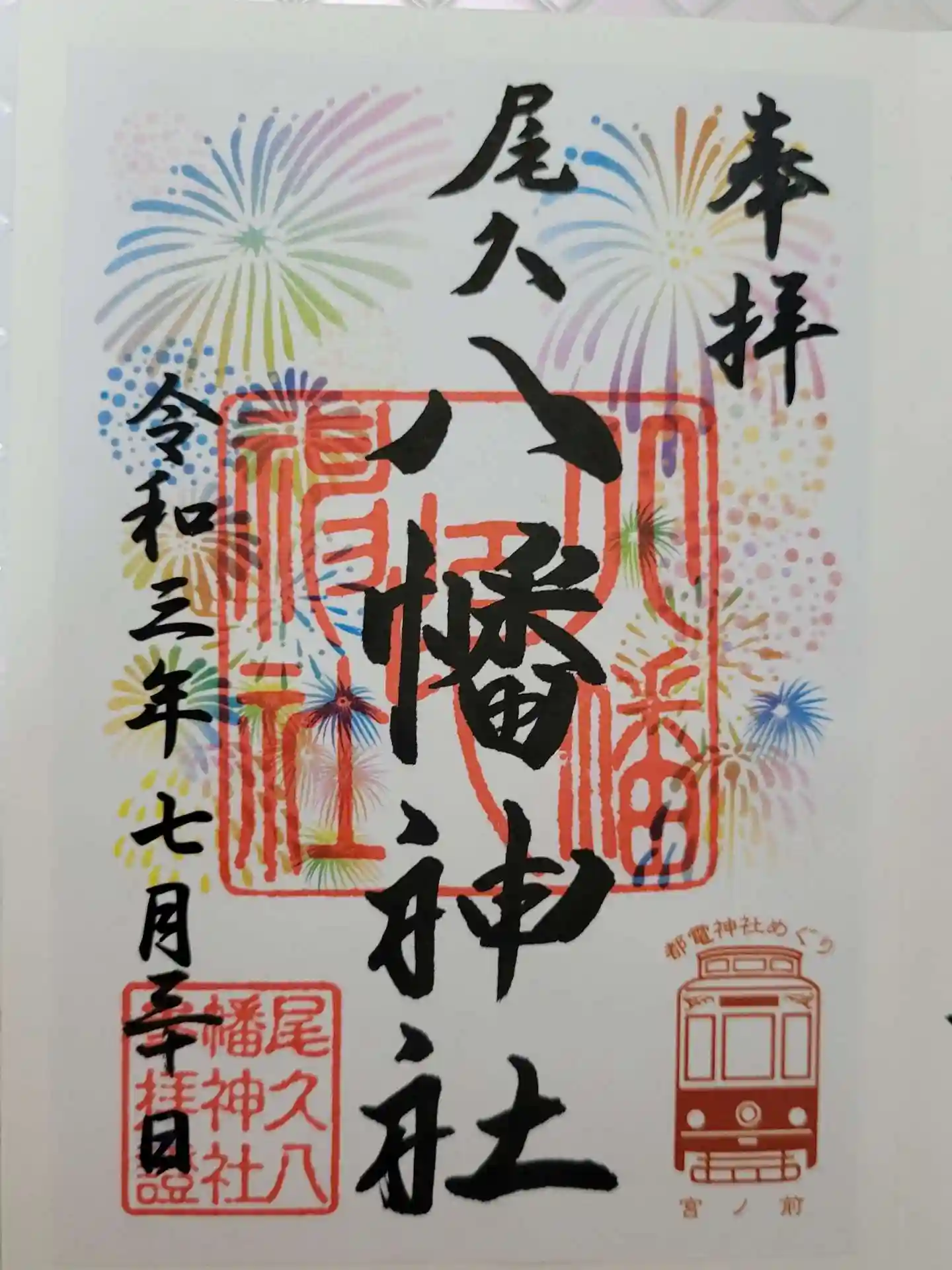 こちらの花火の御朱印と、厳島神社の琵琶のイラストが入った御朱印をいただきました。