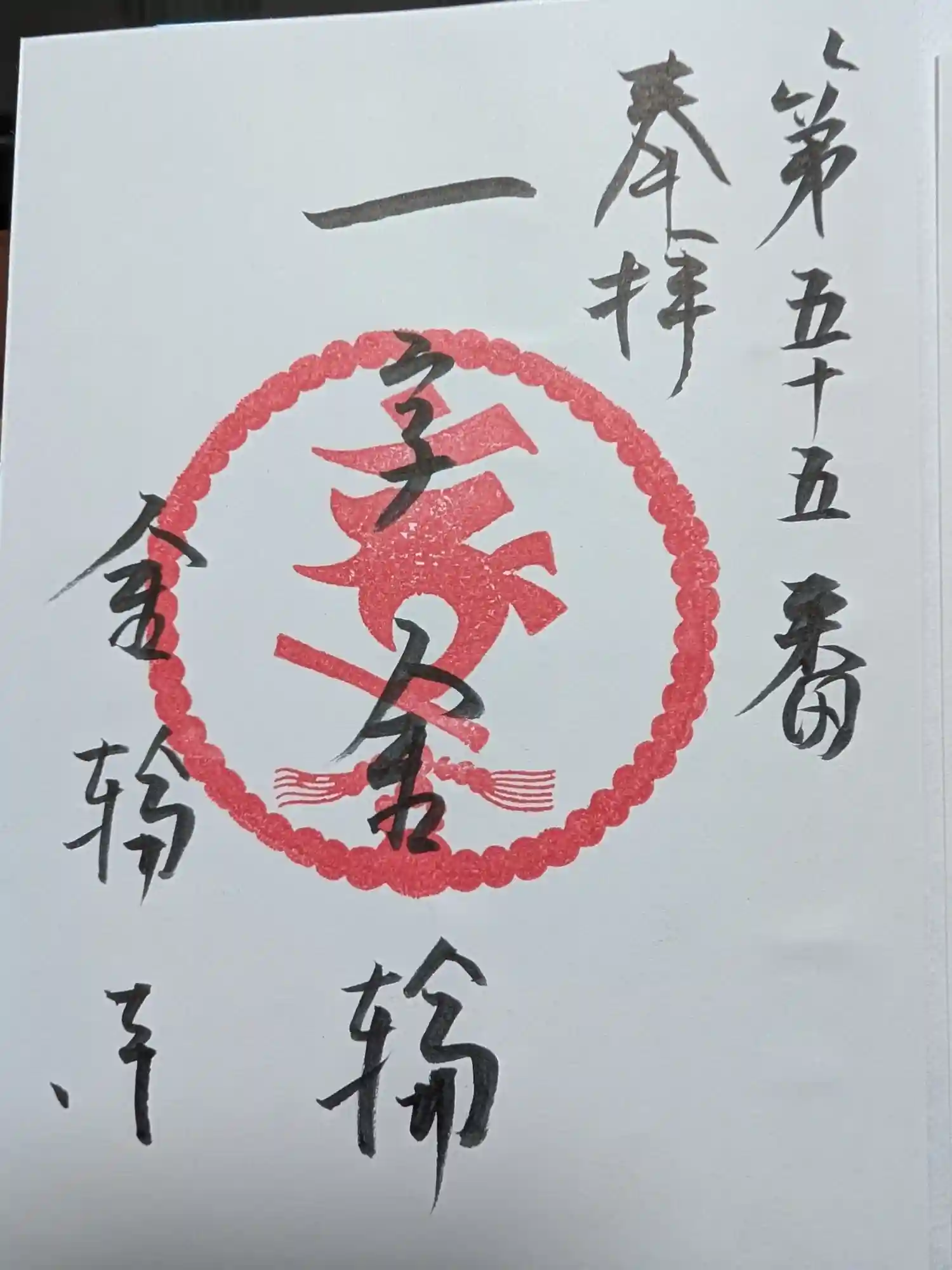豊島八十八ケ所霊場第55番札所の金輪寺さんにて書置きの御朱印を拝受。志納料はお気持ちでとのことです。